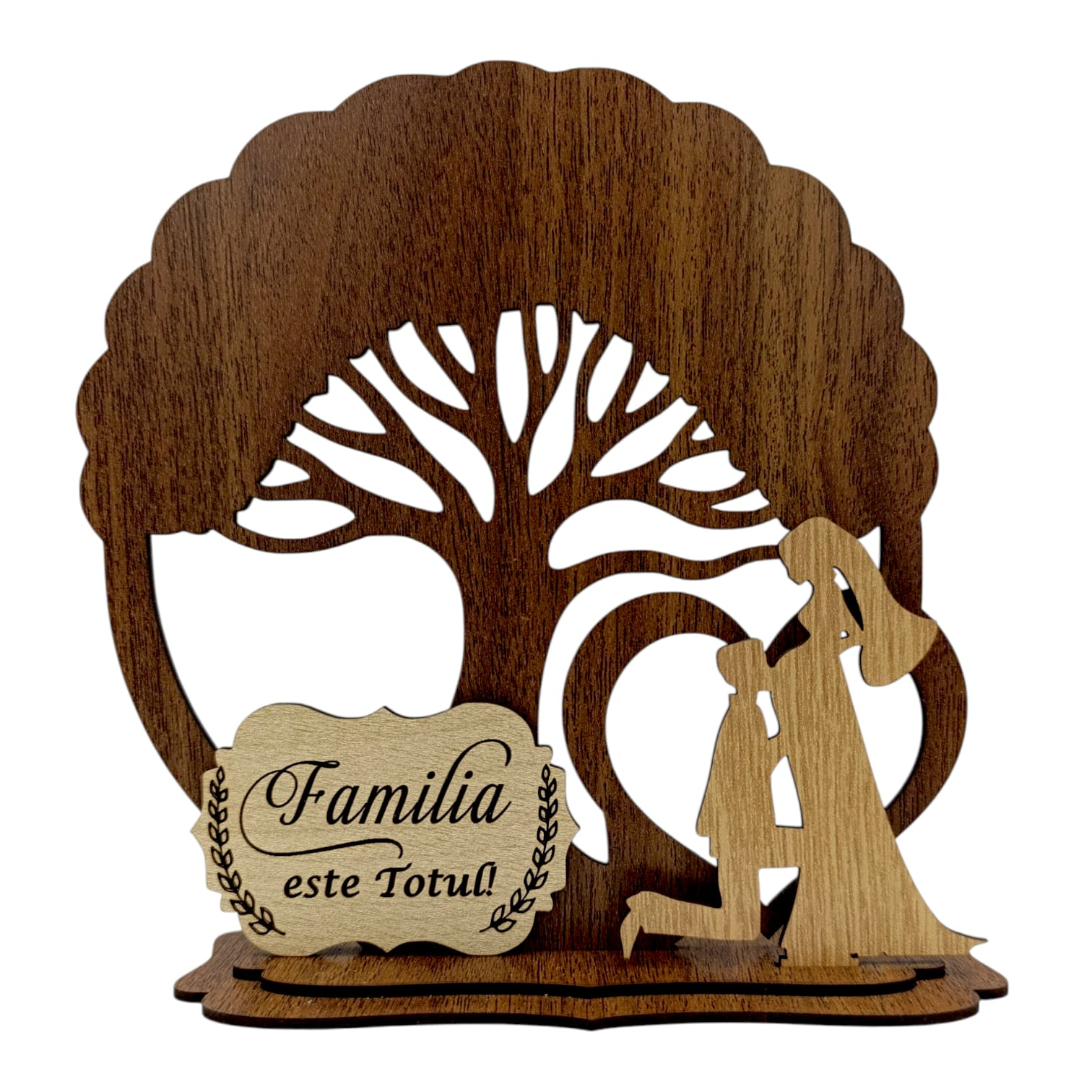 Această decorațiune din lemn natural, disponibilă în mai multe dimensiuni și culori – Cireș, Wenge, Nuc, Natur – este ideală pentru a fi oferită celor care merită o amintire specială: familie, prieteni, soție sau mamă.