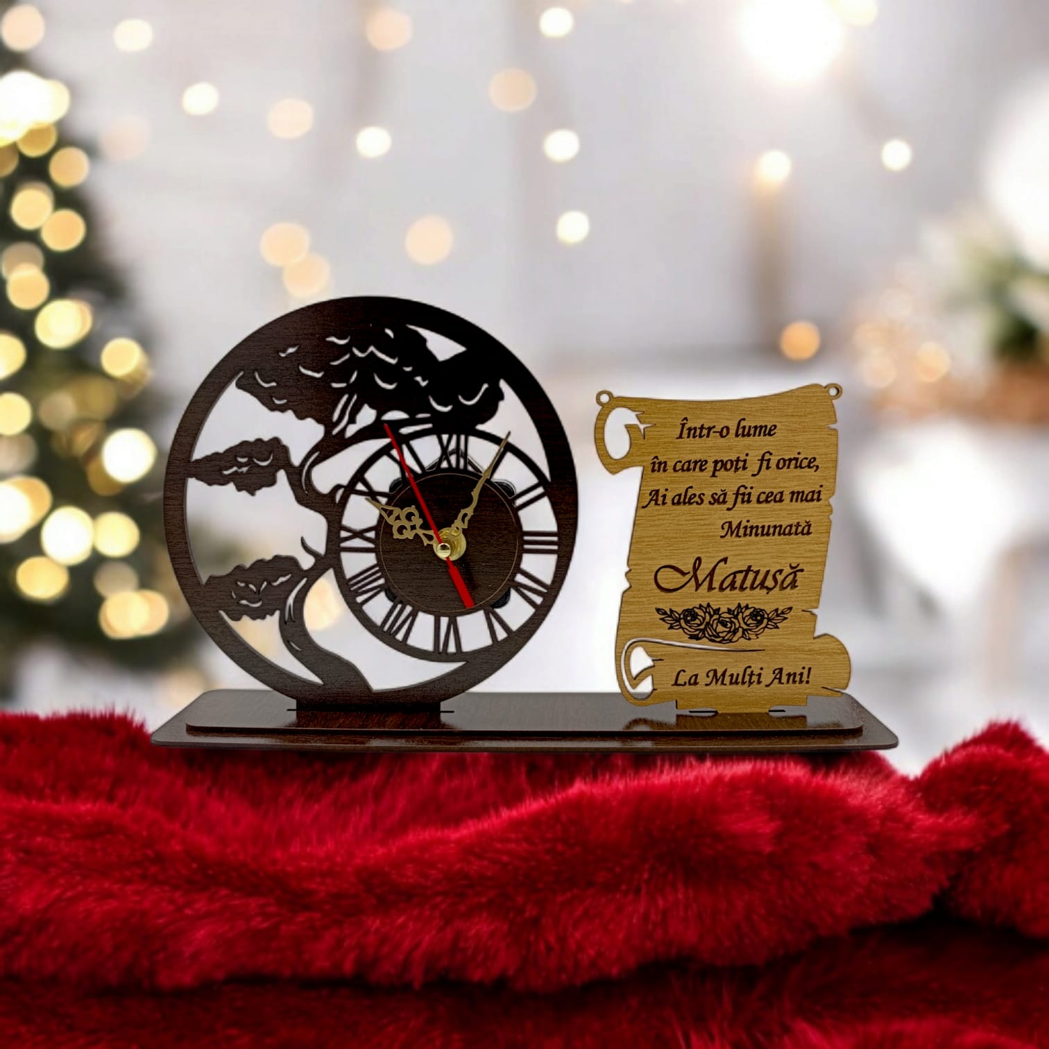 Blank Ceas Bonsai cu Placută, personalizat pentru Matusa "Intr-o lume in care poti fii orice", Produs în România de Rustic Wood Decor ,dimensiune 30x18cm