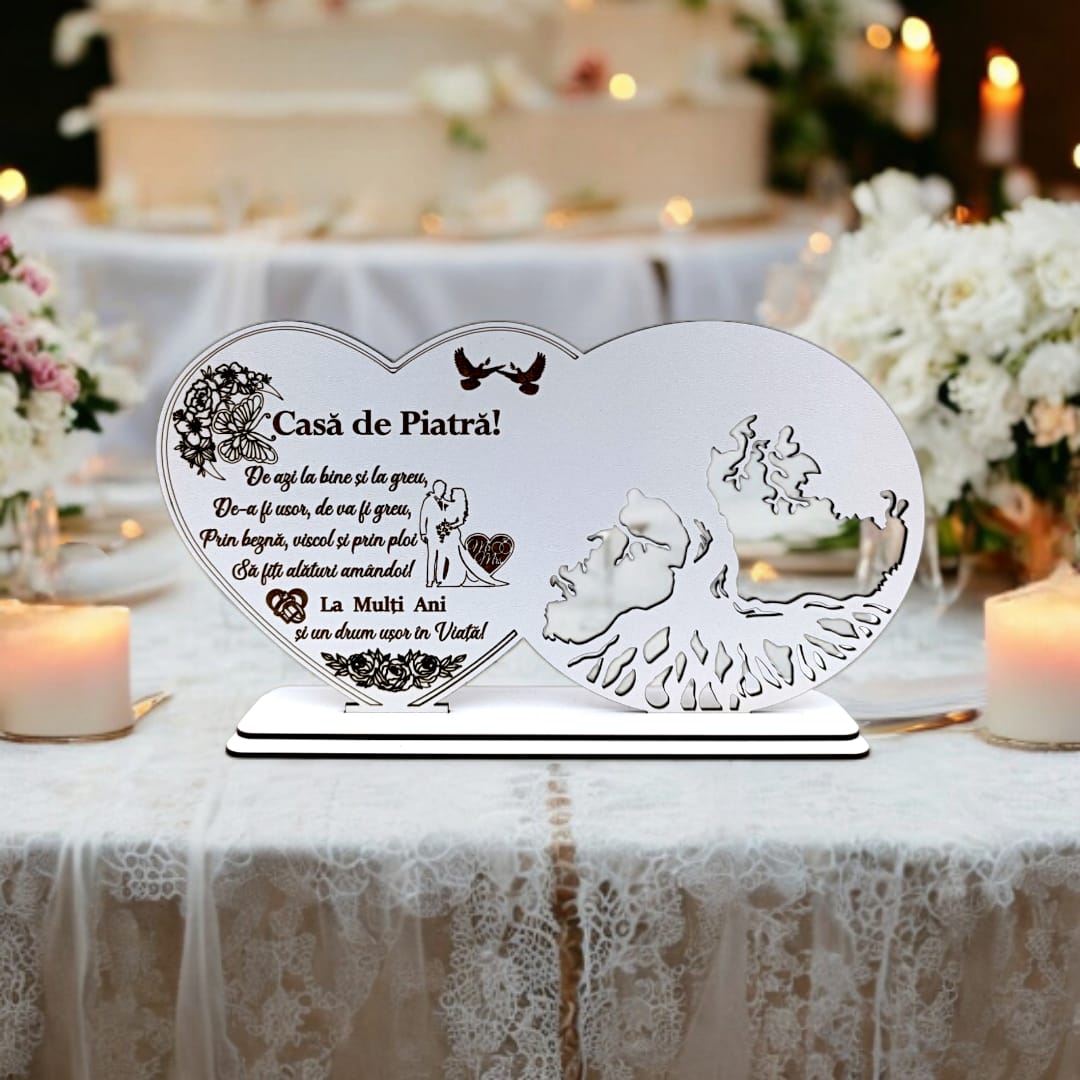 Blank decorativ cu suport, personalizat Casă De Piatră , Produs în România de Rustic Wood Decor, dimensiune 30x16cm