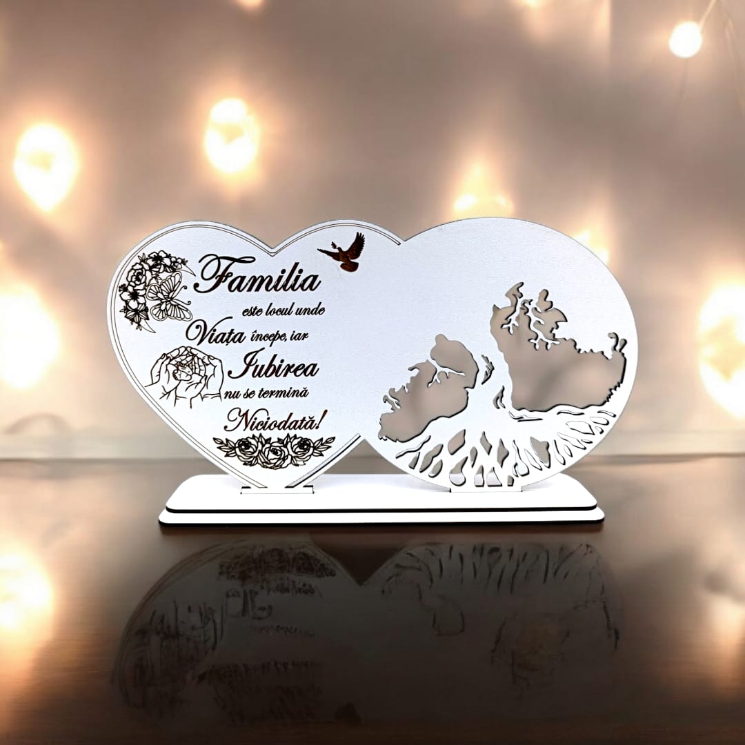 Blank decorativ cu suport, personalizat Familia este locul unde Viața Începe , Produs în România de Rustic Wood Decor, dimensiune 30x16cm