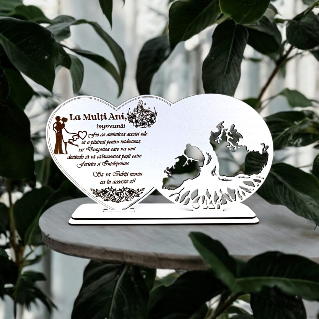Blank decorativ cu suport, personalizat La Mulți Ani împreună, Produs în România de Rustic Wood Decor, dimensiune 30x16cm