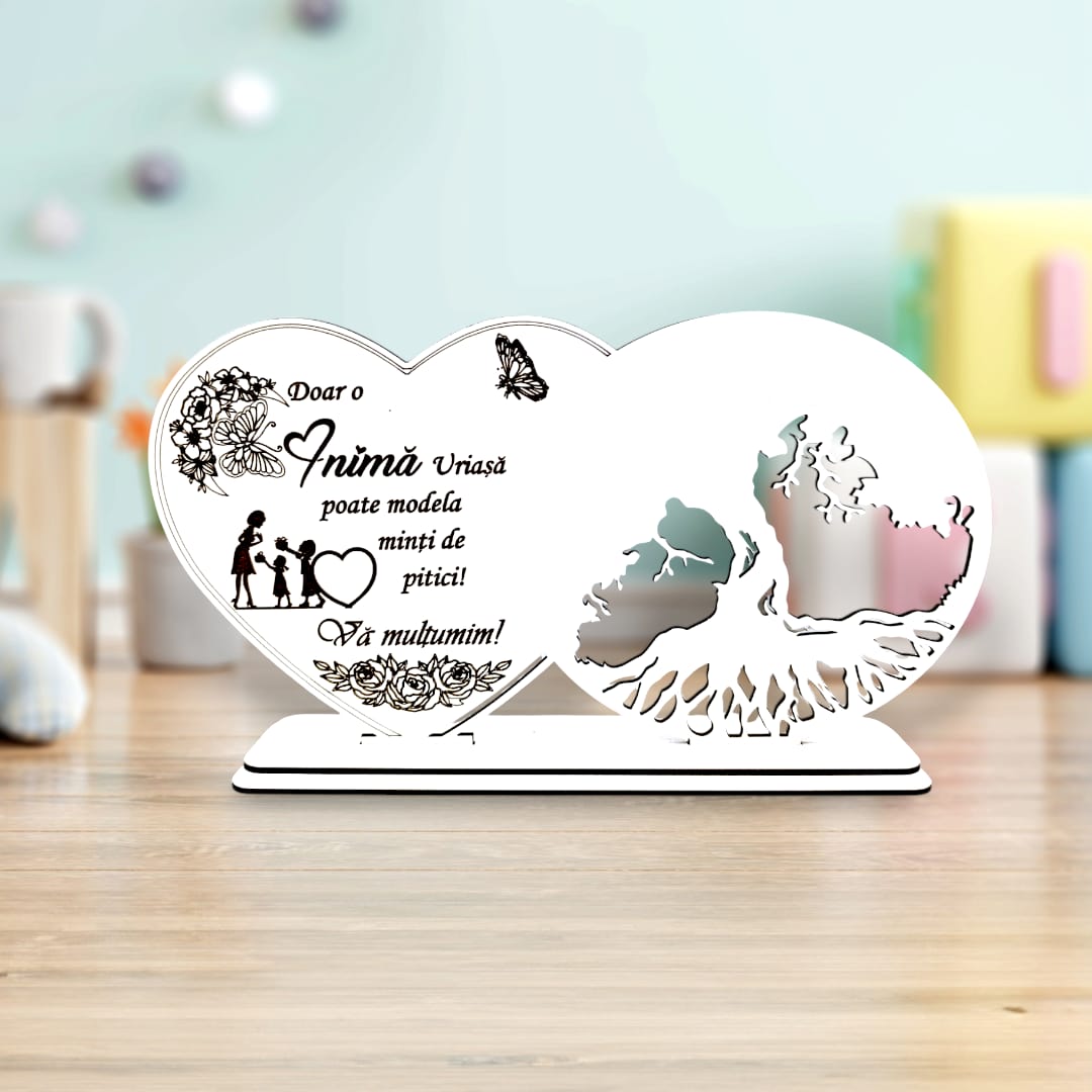 Blank decorativ cu suport, personalizat O Inimă Uriașă , Produs în România de Rustic Wood Decor, dimensiune 30x16cm