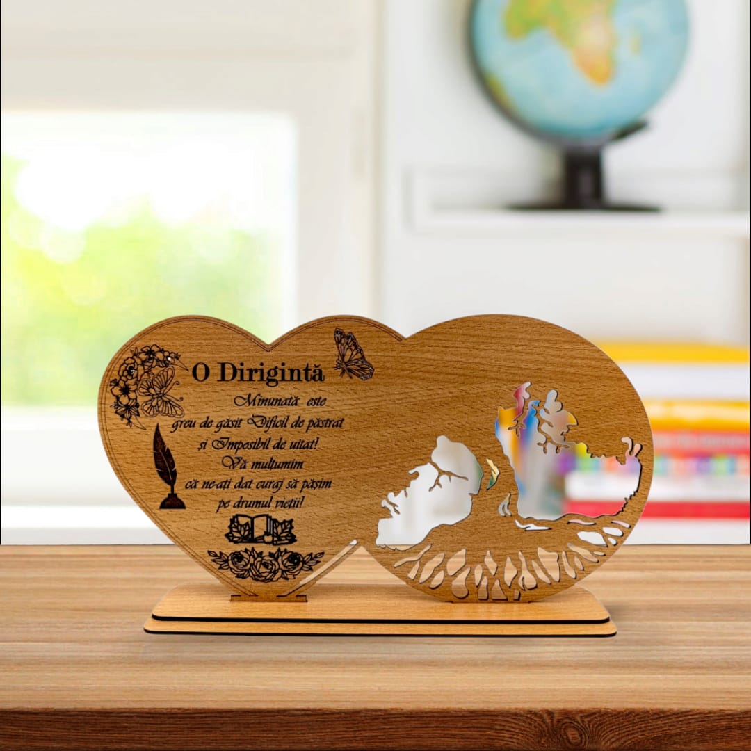 Blank decorativ cu suport, personalizat pentru Dirigintă , Produs în România de Rustic Wood Decor, dimensiune 30x16cm