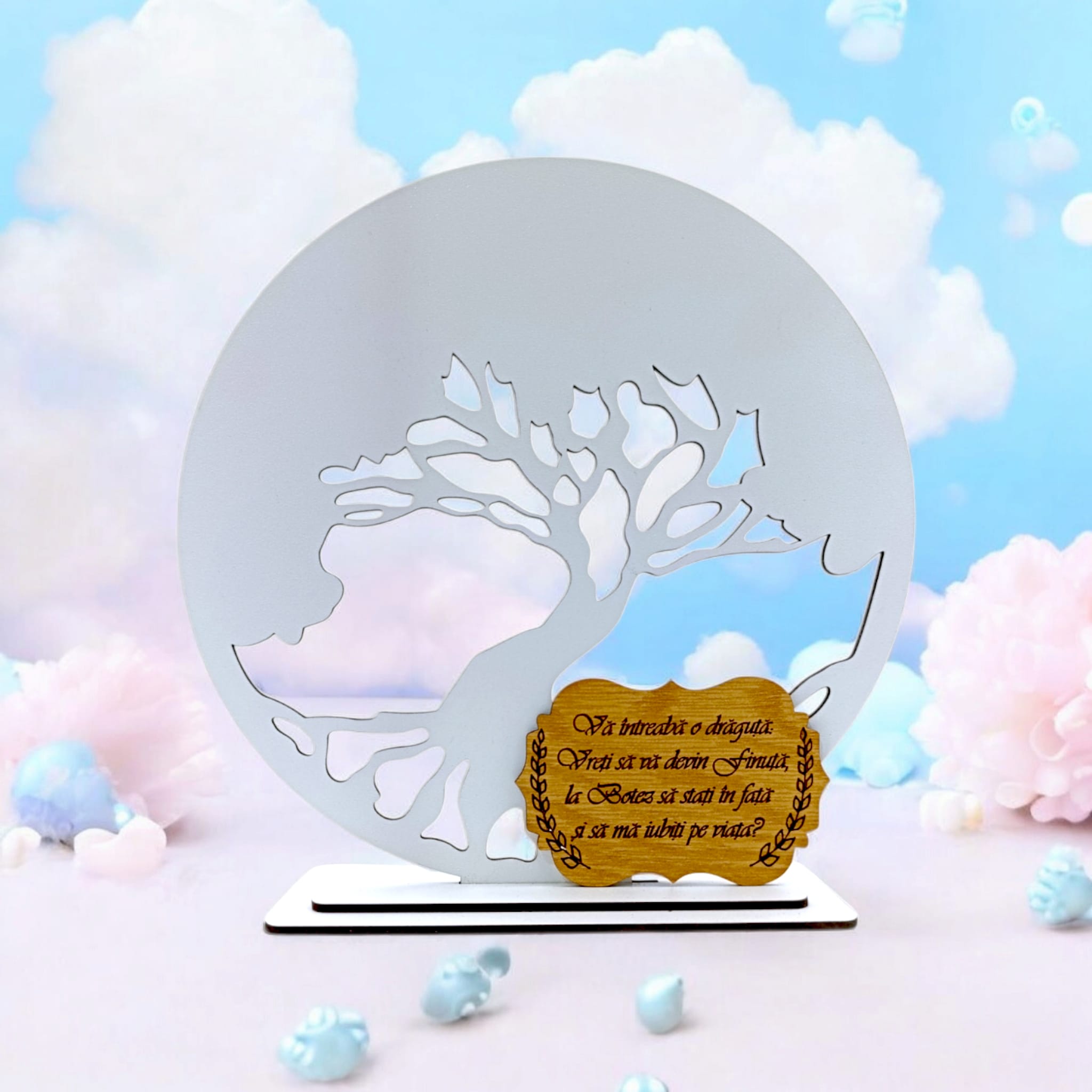 Blank pentru licheni stabilizati cu suport, personalizat pentru botez fetita, personalizabil, Produs în România de Rustic Wood Decor, model 2
