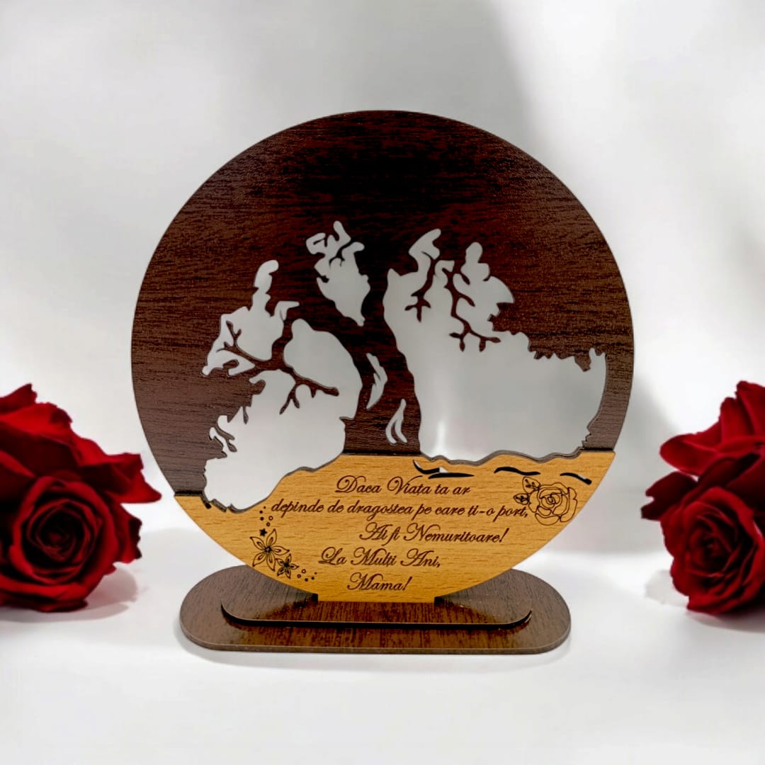 Realizat din lemn de calitate superioară, cu detalii fine și un design atent lucrat, Copacul Vieții poate fi personalizat cu mesajul dorit, oferindu-ți posibilitatea de a-l face cu adevărat unic și de a adăuga o notă personală oricărui spațiu. Fie că este vorba de un cadou pentru cei dragi, fie că vrei să-l integrezi în decorul propriei case sau birou, acest produs aduce un mesaj profund de armonie și continuitate.