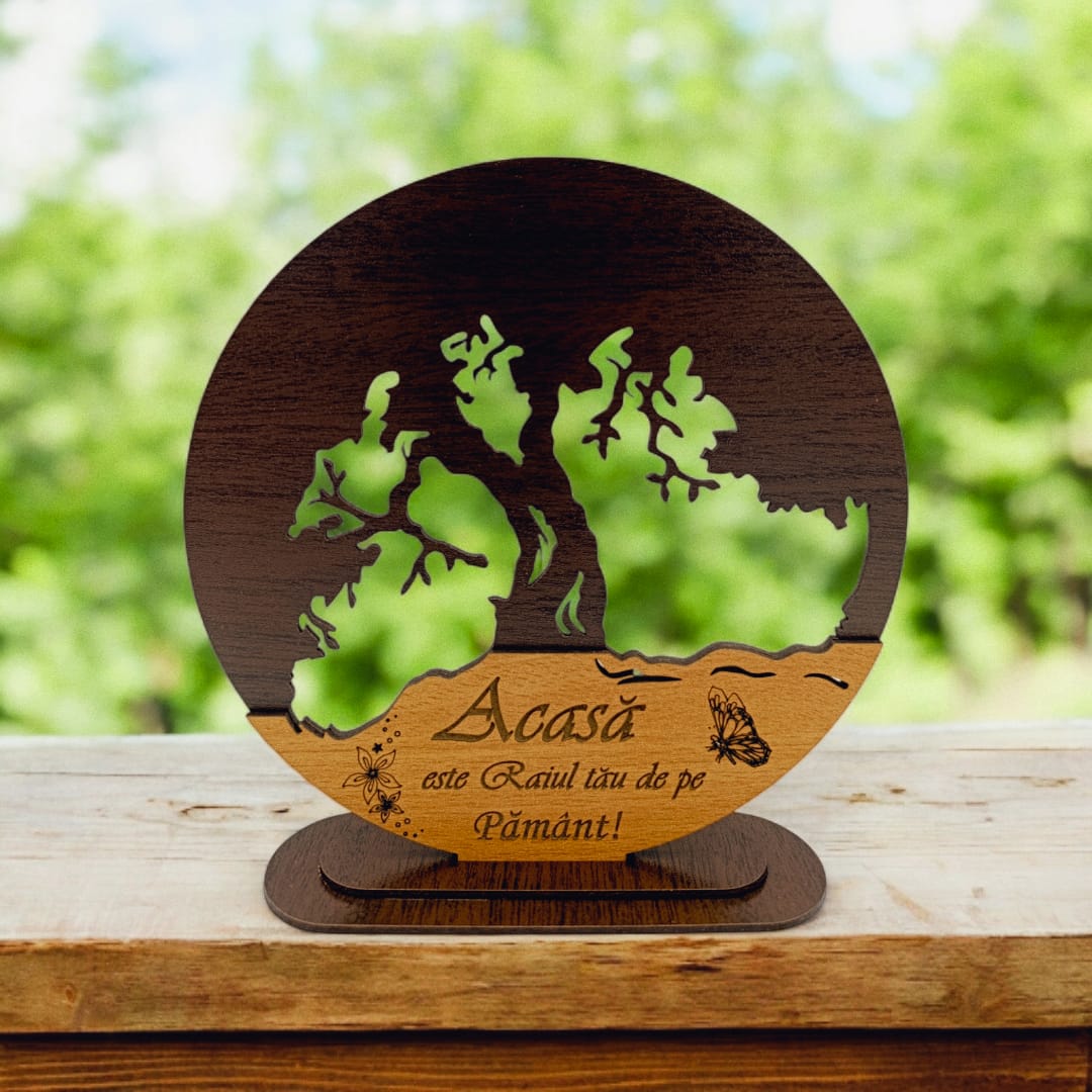Blank personalizabil, Copacul Vieții decorativ cu mesaj standard ”Acasă este Raiul tău de pe Pământ!” – Produs în România de Rustic Wood Decor