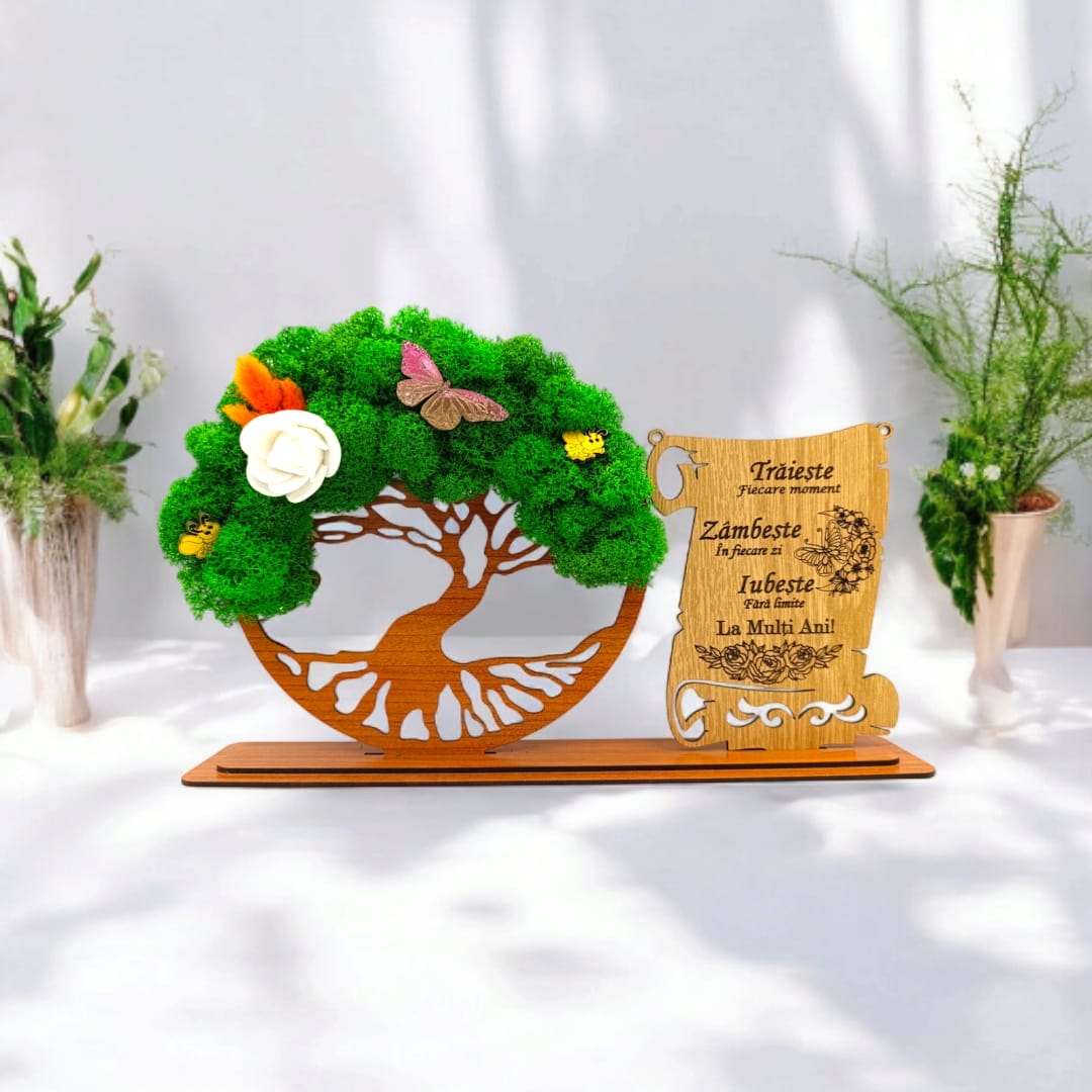 Cadou Personalizat - Copacul vietii cu licheni si placuta 30x18cm