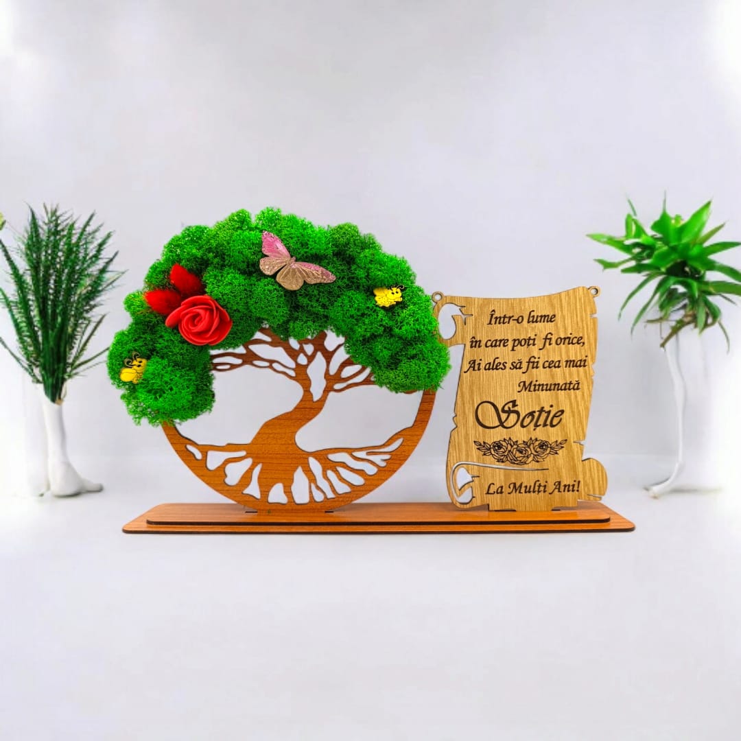 Cadou personalizat, Copacul vietii cu licheni si placuta, mesaj standard pentru Sotie, dimensiune 30x18cm