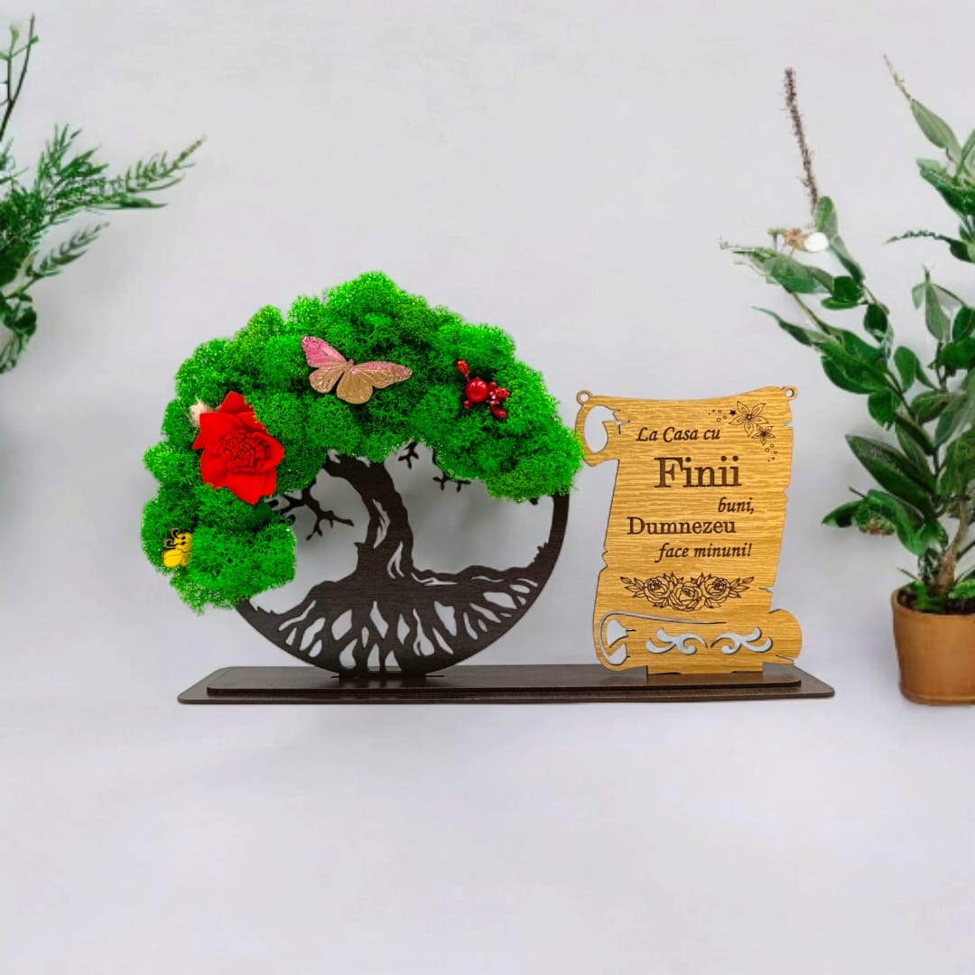Cadou Personalizat - Copacul vietii cu licheni si placuta 30x18cm