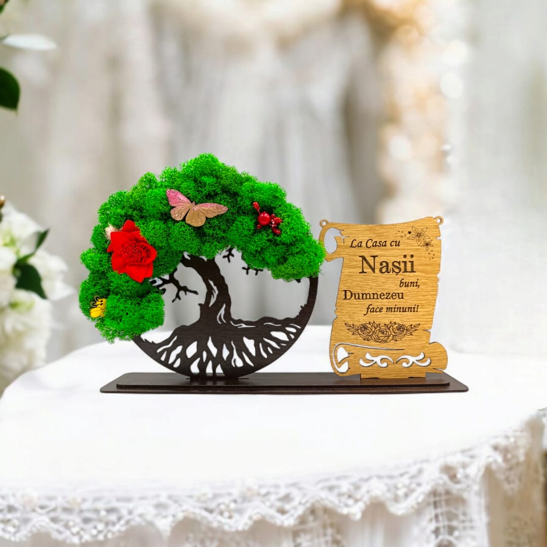 Cadou Personalizat - Copacul vietii cu licheni si placuta 30x18cm