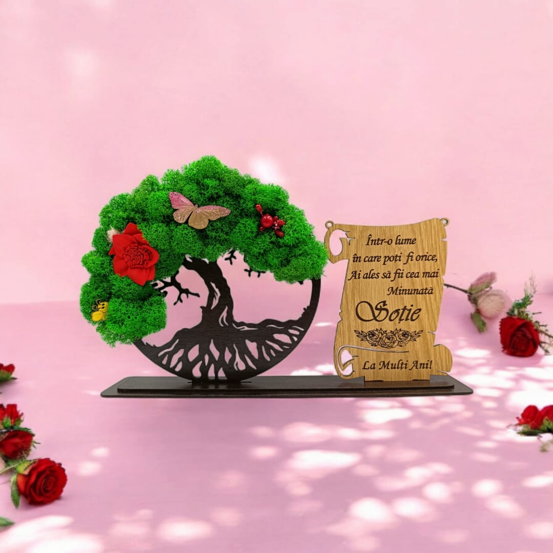 Cadou Personalizat - Copacul vietii cu licheni si placuta 30x18cm