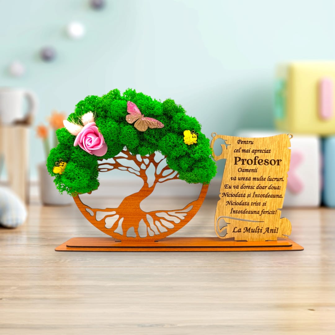 Cadou Personalizat - Copacul vietii cu licheni si placuta 30x18cm