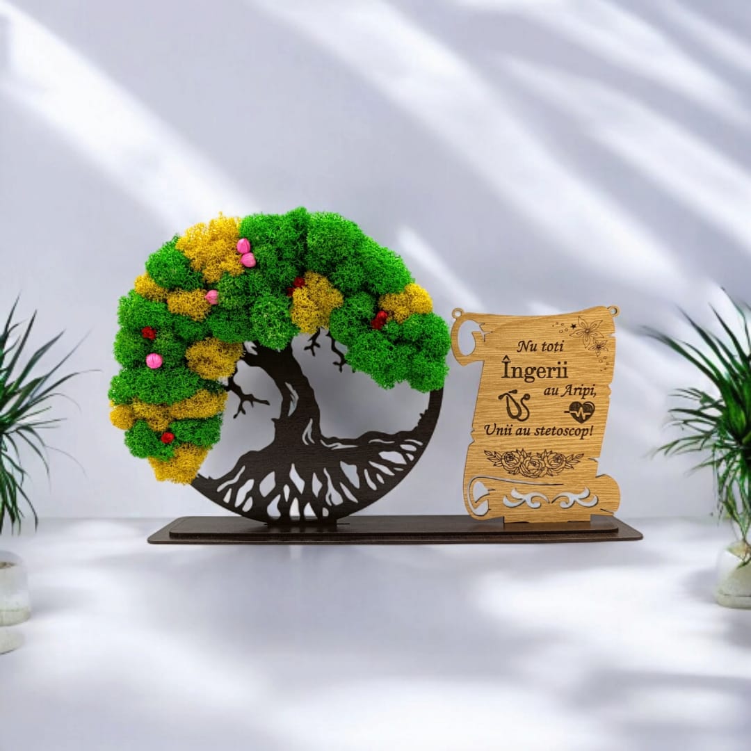 Cadou Personalizat - Copacul vietii cu licheni si placuta 30x18cm
