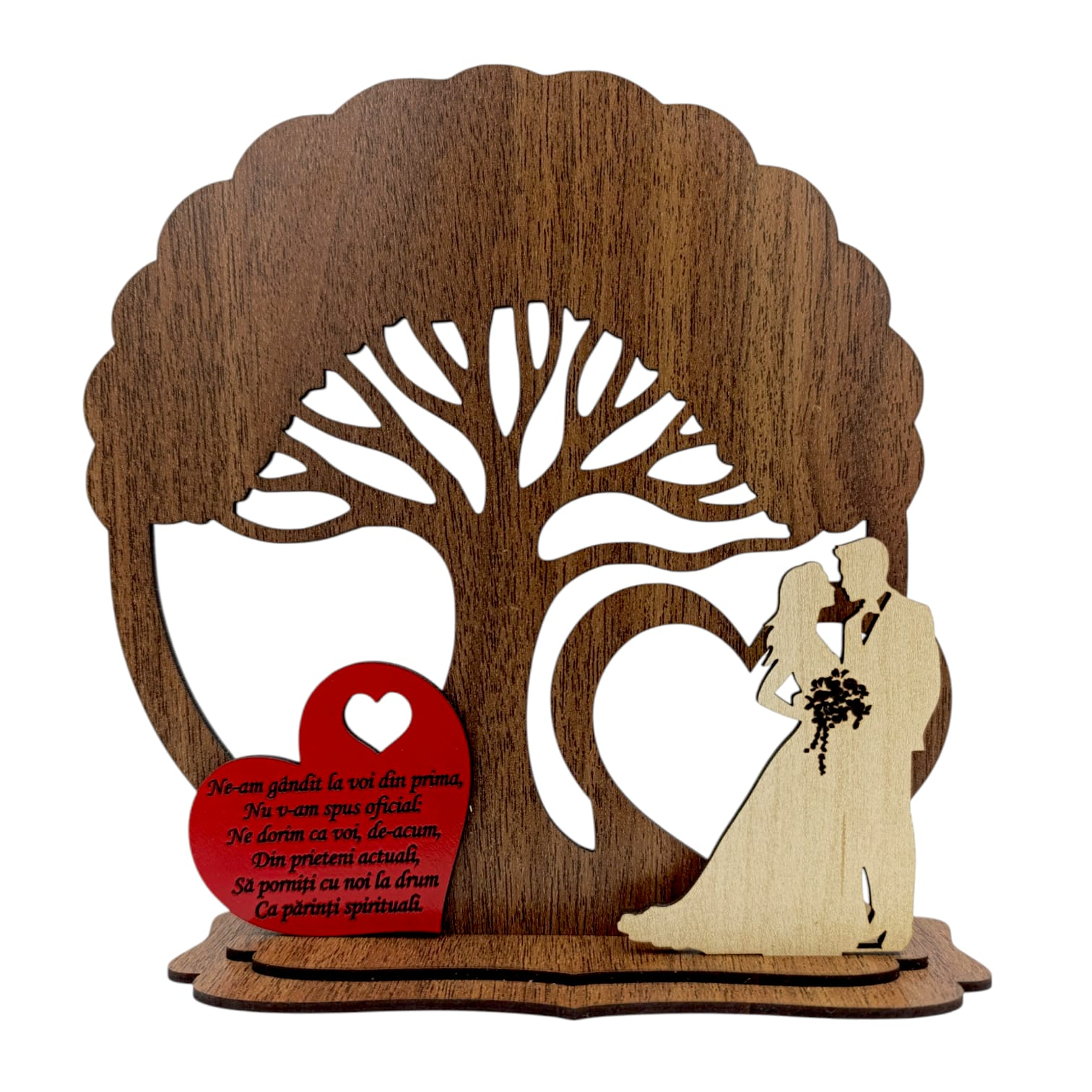 Blank Copac cu siluete si mesaj pentru Nasi/Botez/Fini/Nunta , cadou personalizat, nuc