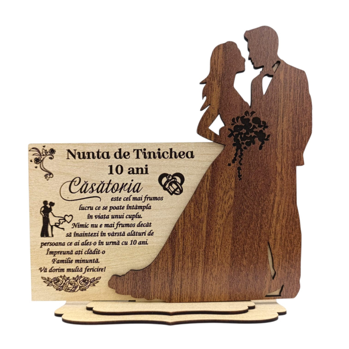 Indiferent dacă cauți un cadou unic pentru miri, o decoratiune personalizată pentru nuntă sau un suvenir elegant pentru invitați, aici vei găsi o gamă variată de opțiuni: plăci gravate din lemn, rame personalizate, cutii de dar, tablouri cu mesaje romantice sau inițiale sculptate.