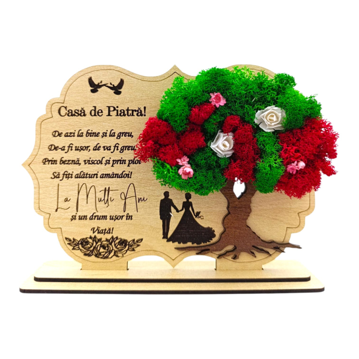 Materialul natural al lemnului aduce un plus de căldură și rafinament, iar combinația cu licheni stabilizați oferă un contrast plin de viață, simbol al iubirii și al durabilității. Toate produsele pot fi personalizate cu numele mirilor, data nunții sau un mesaj special, creând cadouri de nuntă memorabile care rămân pentru totdeauna.