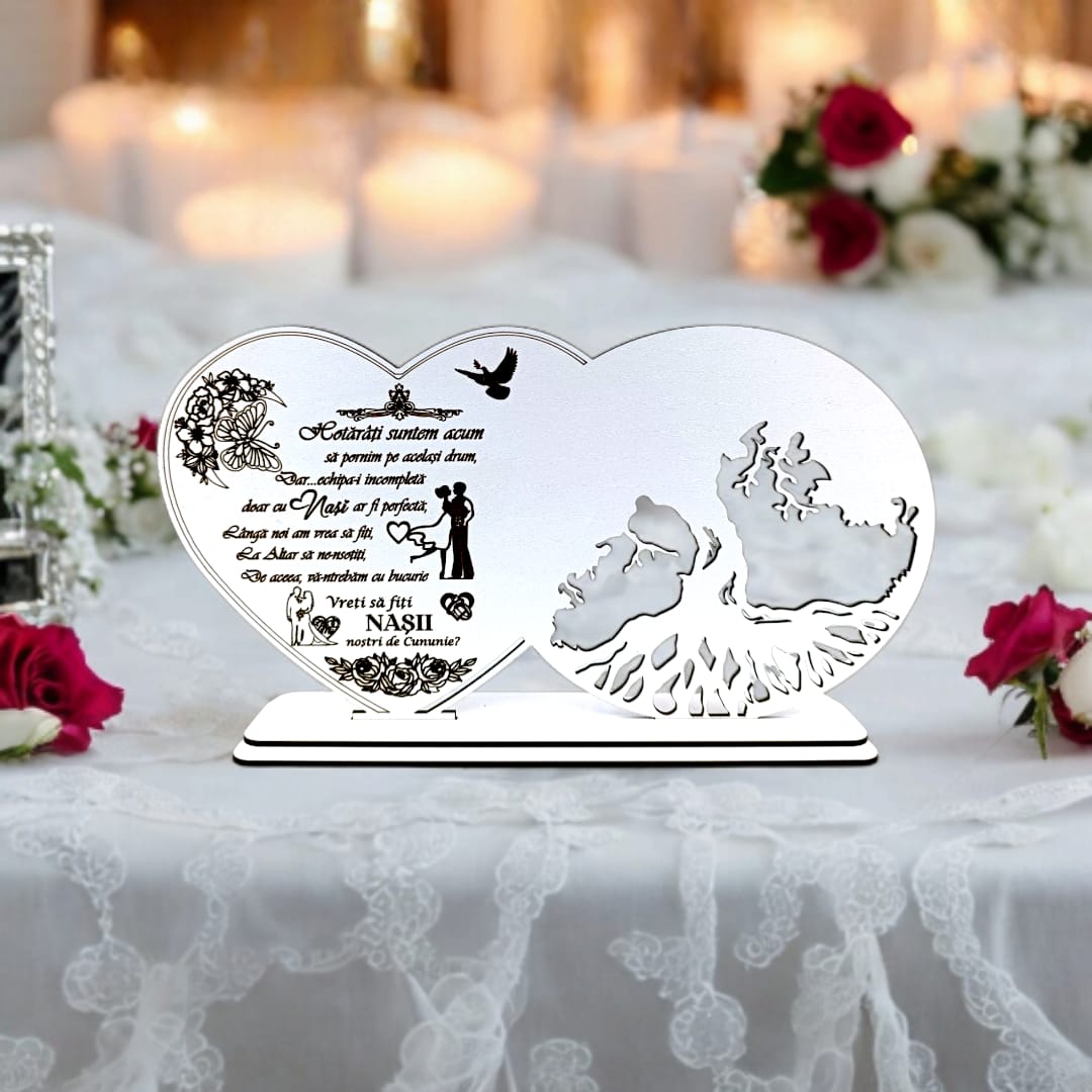 Blank decorativ cu suport, personalizat Vreți Să fiti Nașii Noștri de Cununie , Produs în România de Rustic Wood Decor, dimensiune 30x16cm