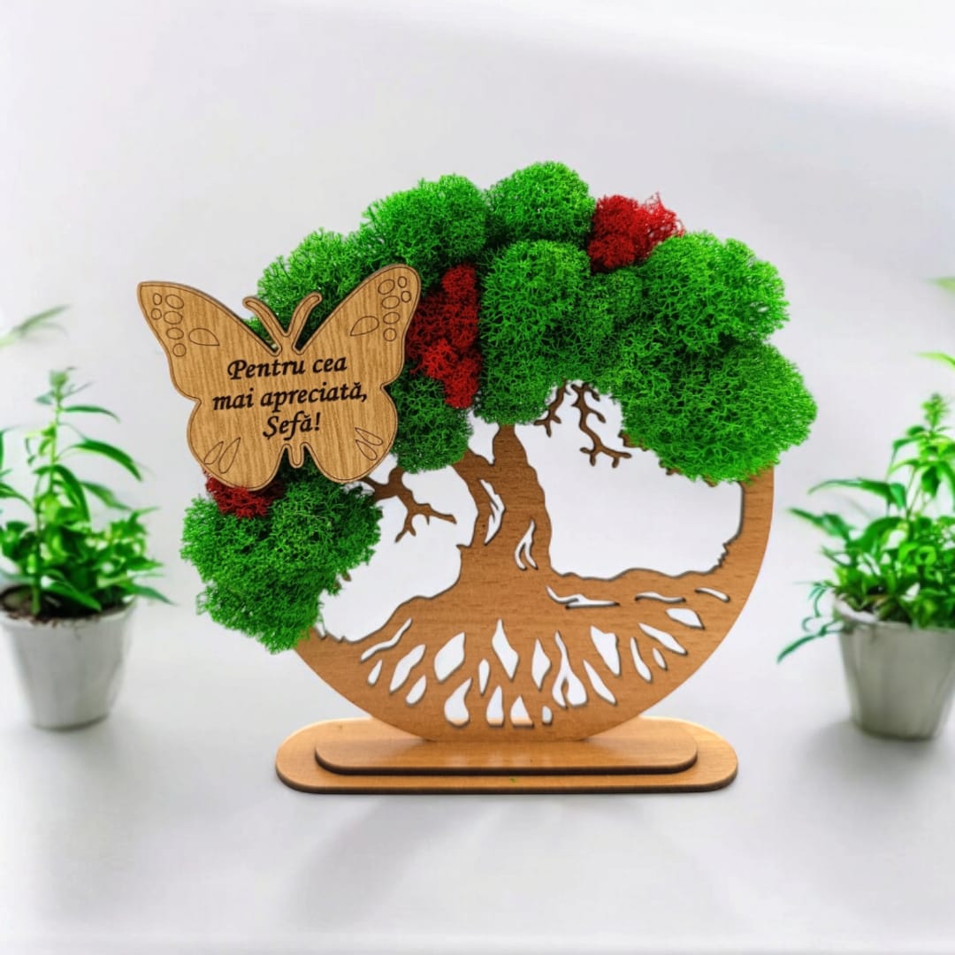 Cadou personalizat, Copacul vietii cu fluture si mesaj standard pentru "Cea mai apreciata Sefa!"
