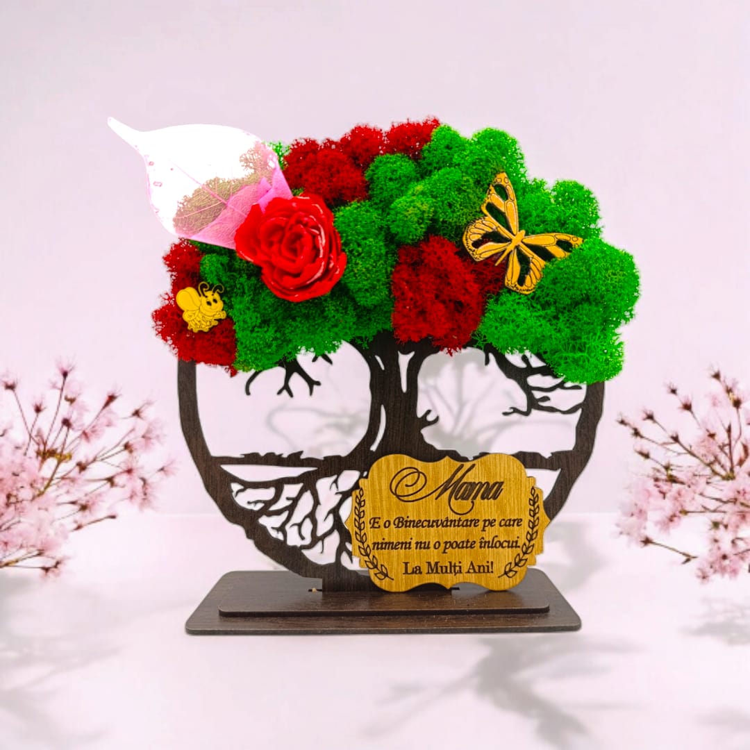 Cadou personalizat cu licheni – Copacul Vietii cu placuta si mesaj standard, model nou pentru Mama