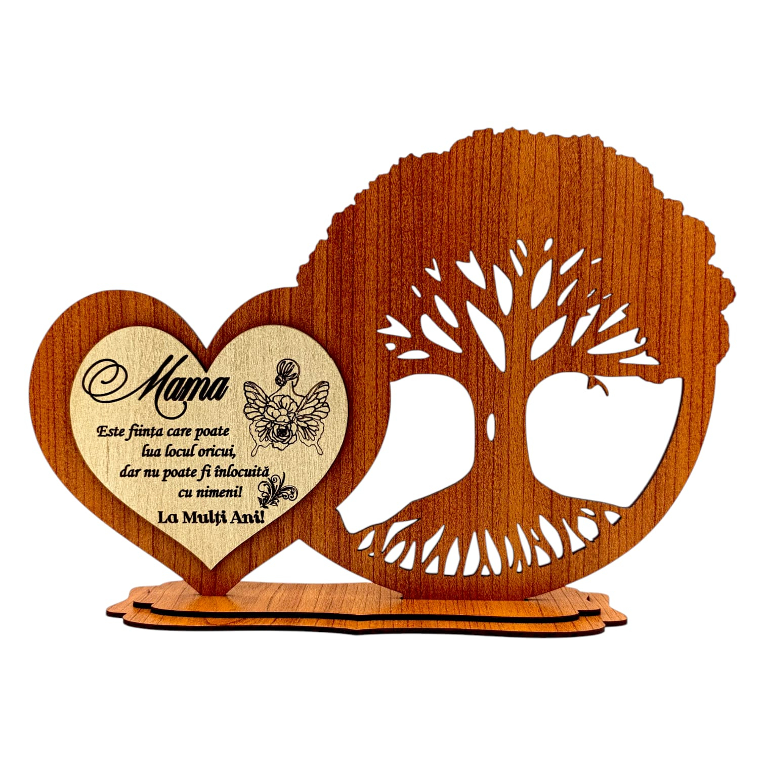 Decoratiune blank din lemn pentru Familie/Prieteni/Sotie Inima si copacul vietii , 30x16 cm - Cires