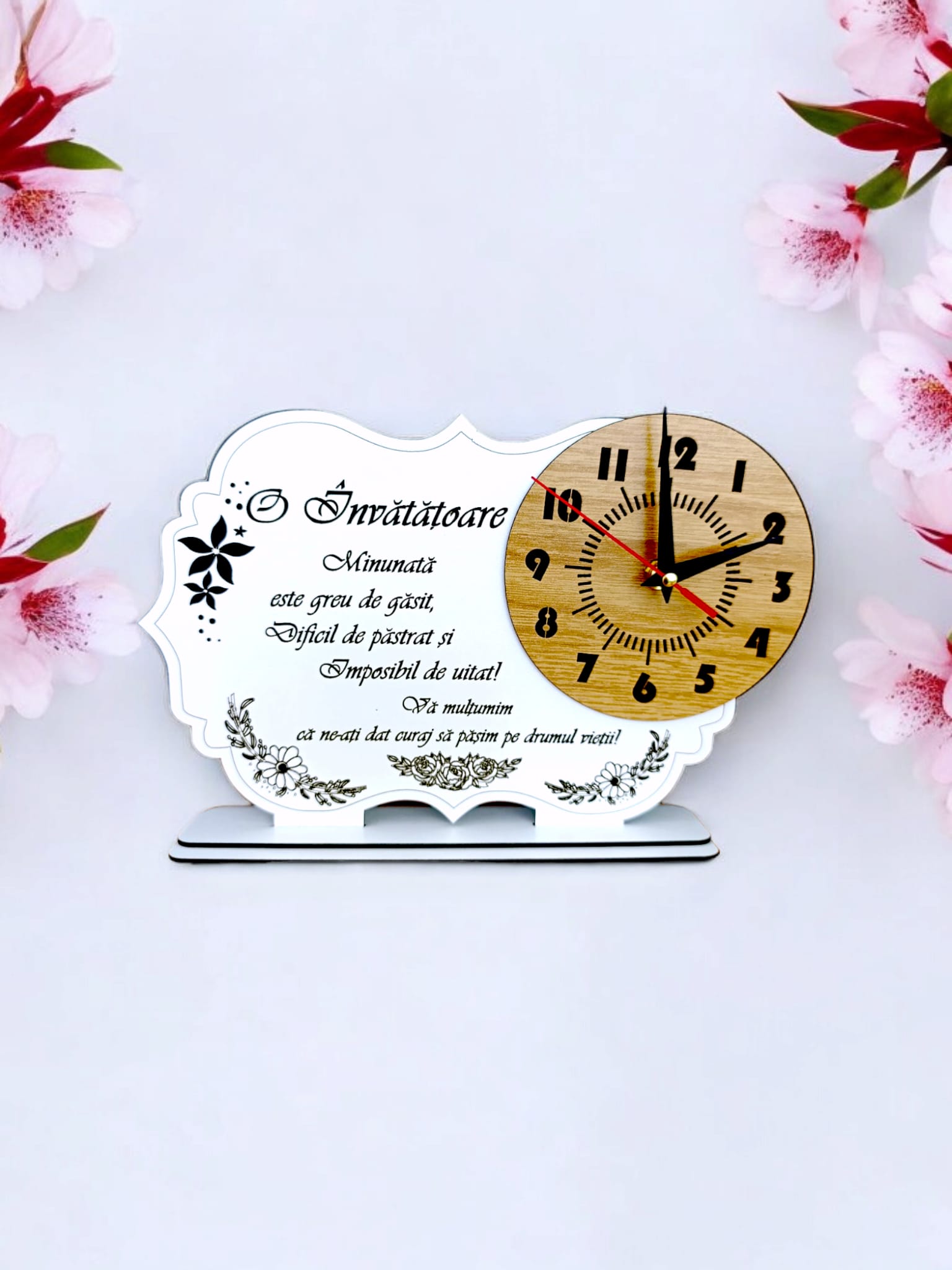 Decoratiune ceas de birou, cu mesaj personalizat standard, contine mecanismul de ceas complet . Dimensiuni aproximative 30x20cm.