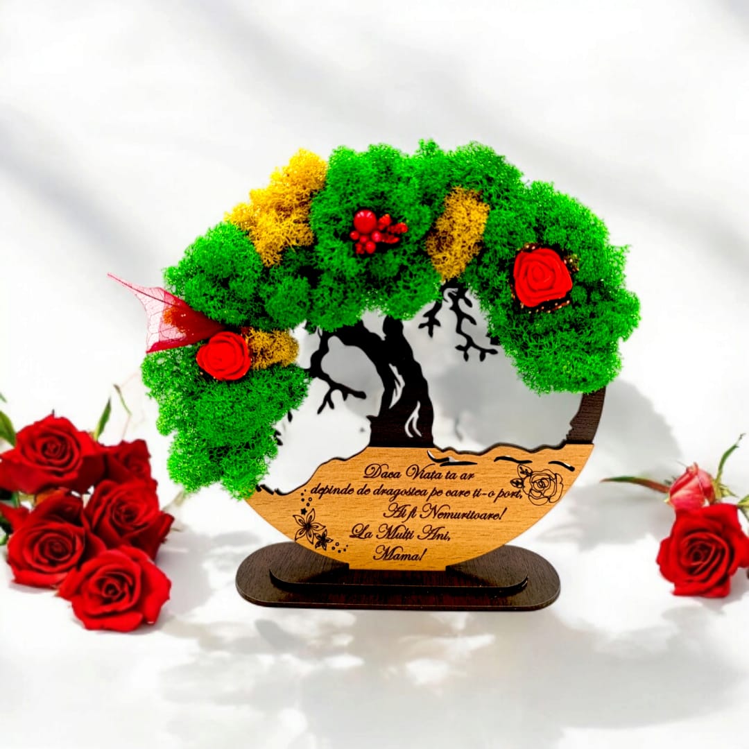 Tablou Copacul Vietii Cadou personalizat cu mesaj standard pentru Mamă ”Dacă viata ta ar depinde de dragostea pe care ti-o port.. ” decorat cu licheni stabilizati Produs în România de Rustic Wood Dec