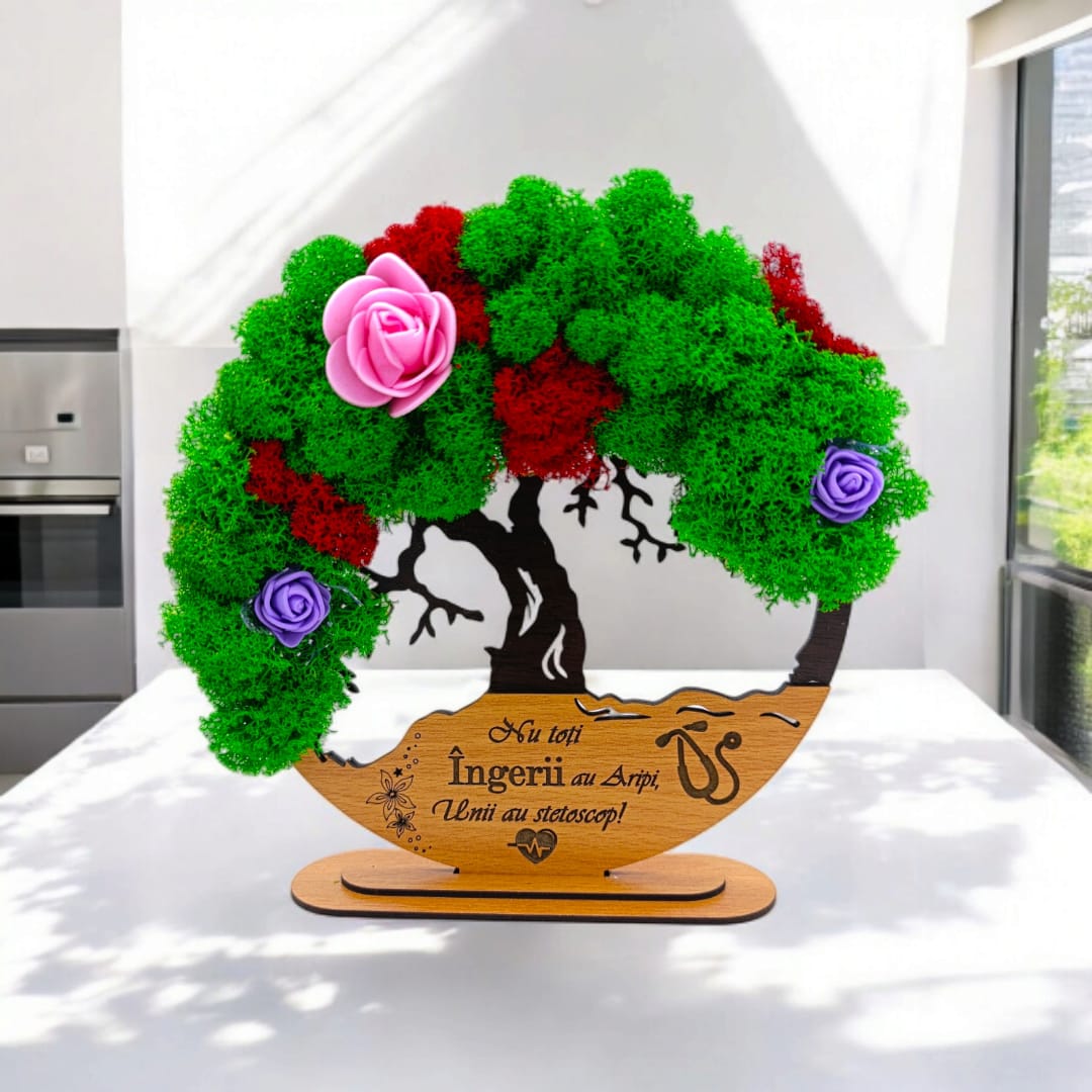 Tablou Copacul Vietii Cadou personalizat cu mesaj standard pentru Sefa/Doctor/Prieteni/Nasi ,negru, decorat cu licheni stabilizati Produs în România de Rustic Wood Decor