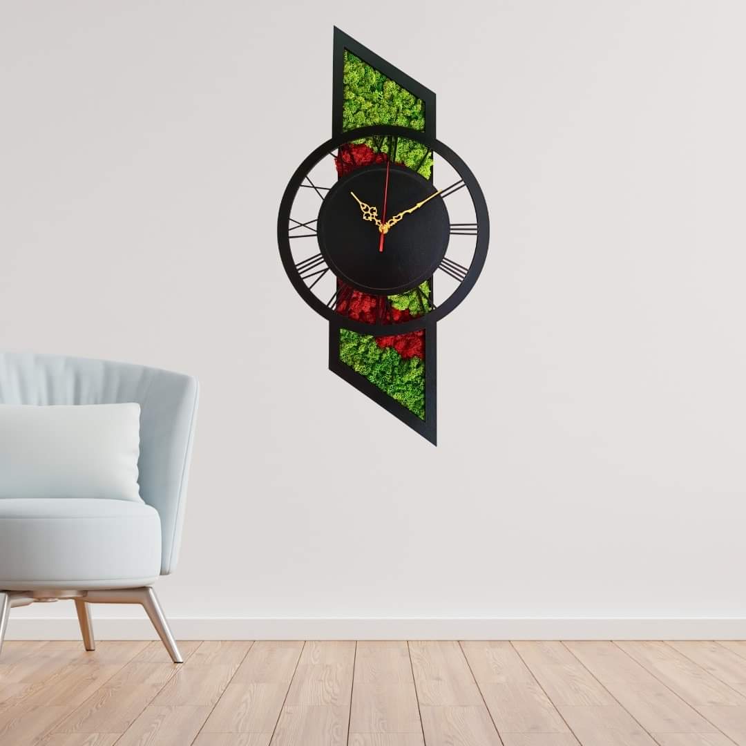 Cadou personalizat, Ceas de perete decorativ cu licheni, fara mesaj standard , negru