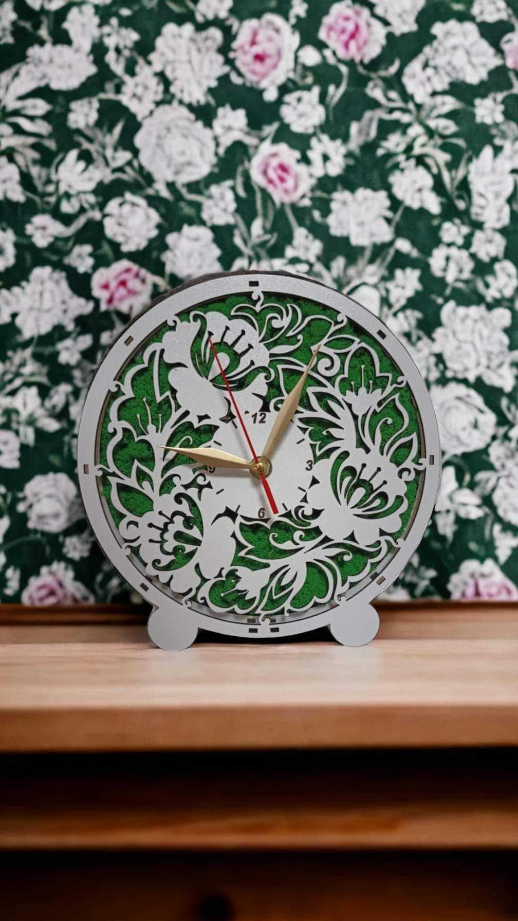 Cadou personalizat, Ceas de birou cu licheni gravat , alb