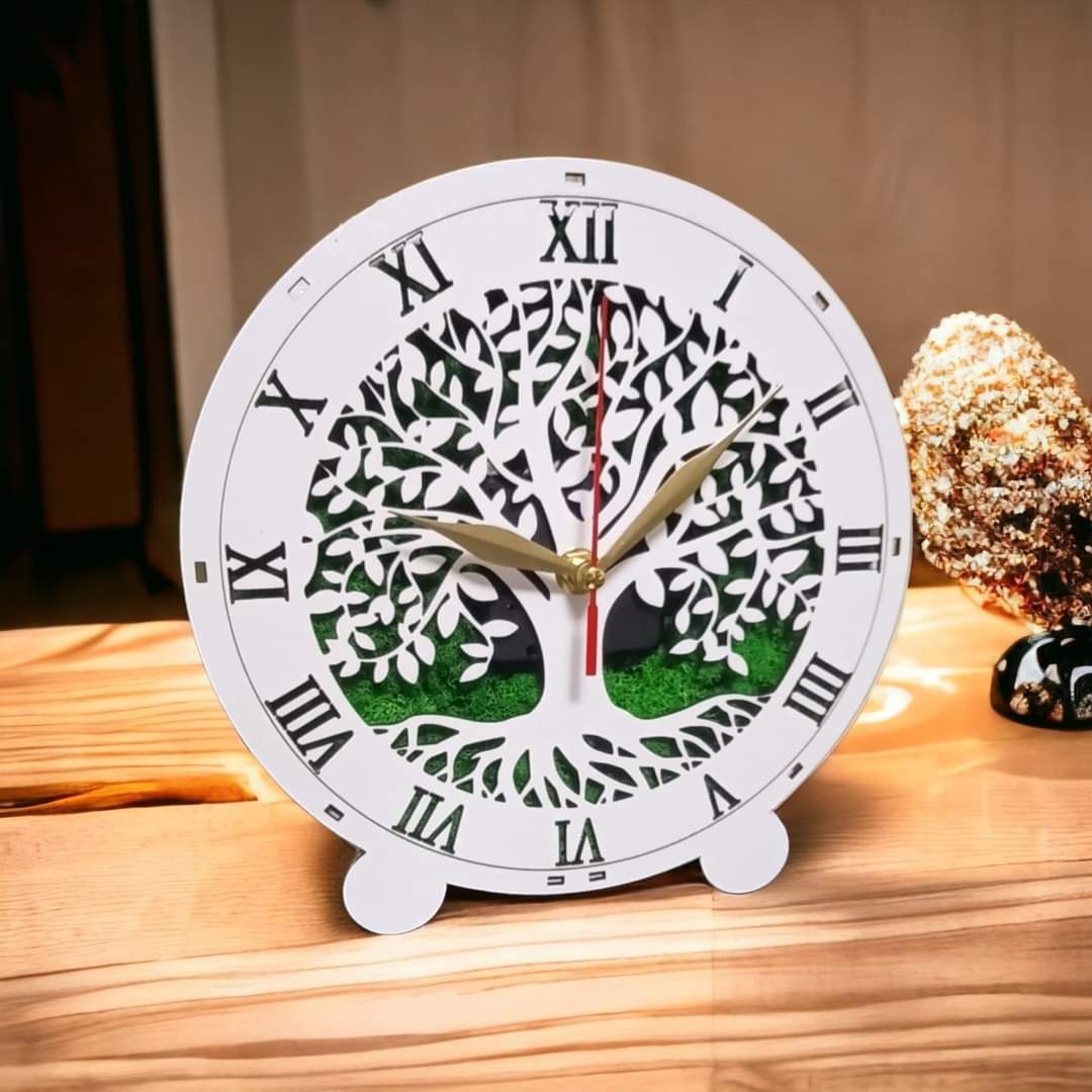 Cadou personalizat, Ceas de birou cu licheni gravat cu Copac , alb