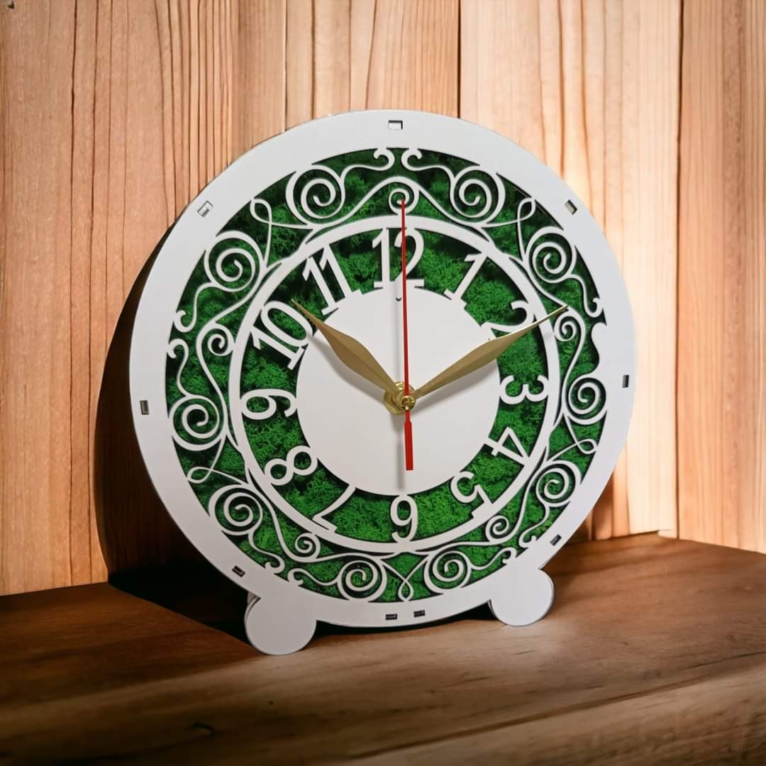 Cadou personalizat, Ceas de birou cu licheni gravat , alb, model 1