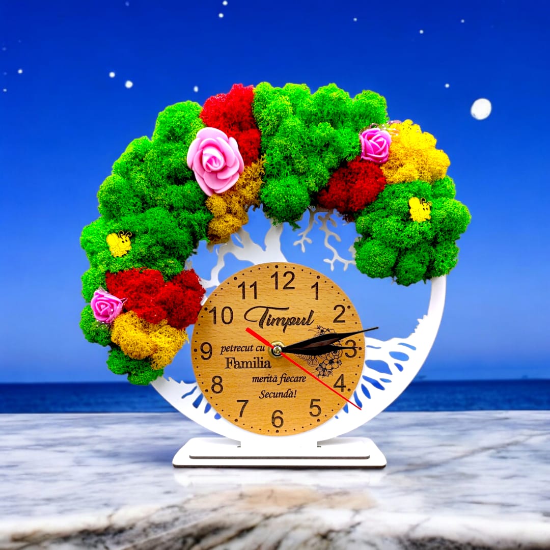 Etichete: cadou, ceas, decorativ, rustic, rustic wood decor, 8 martie, ziua femeii, cadou cu licheni, cadou personalizat