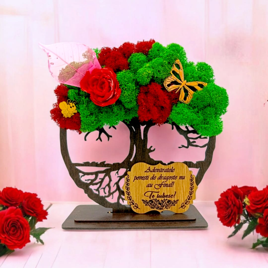 Cadou personalizat cu licheni – Copacul Vietii cu placuta si mesaj standard, model nou pentru Sotie/Iubita