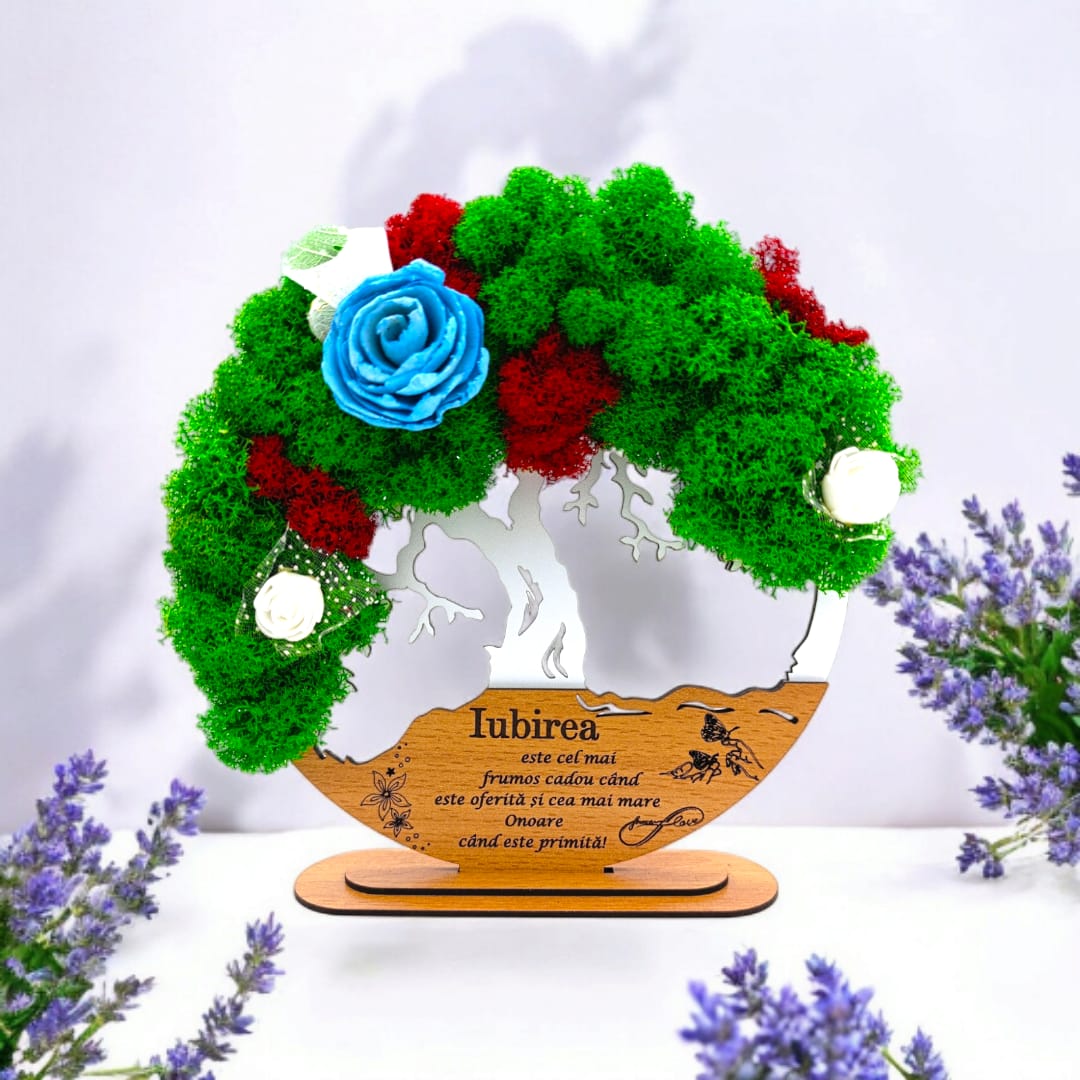 Tablou Copacul Vietii Cadou personalizat cu mesaj standard pentru Prieteni/Sotie/Fini/Familie/Nasi ”Iubirea este cel mai...”, decorat cu licheni stabilizati Produs în România de Rustic Wood Decor