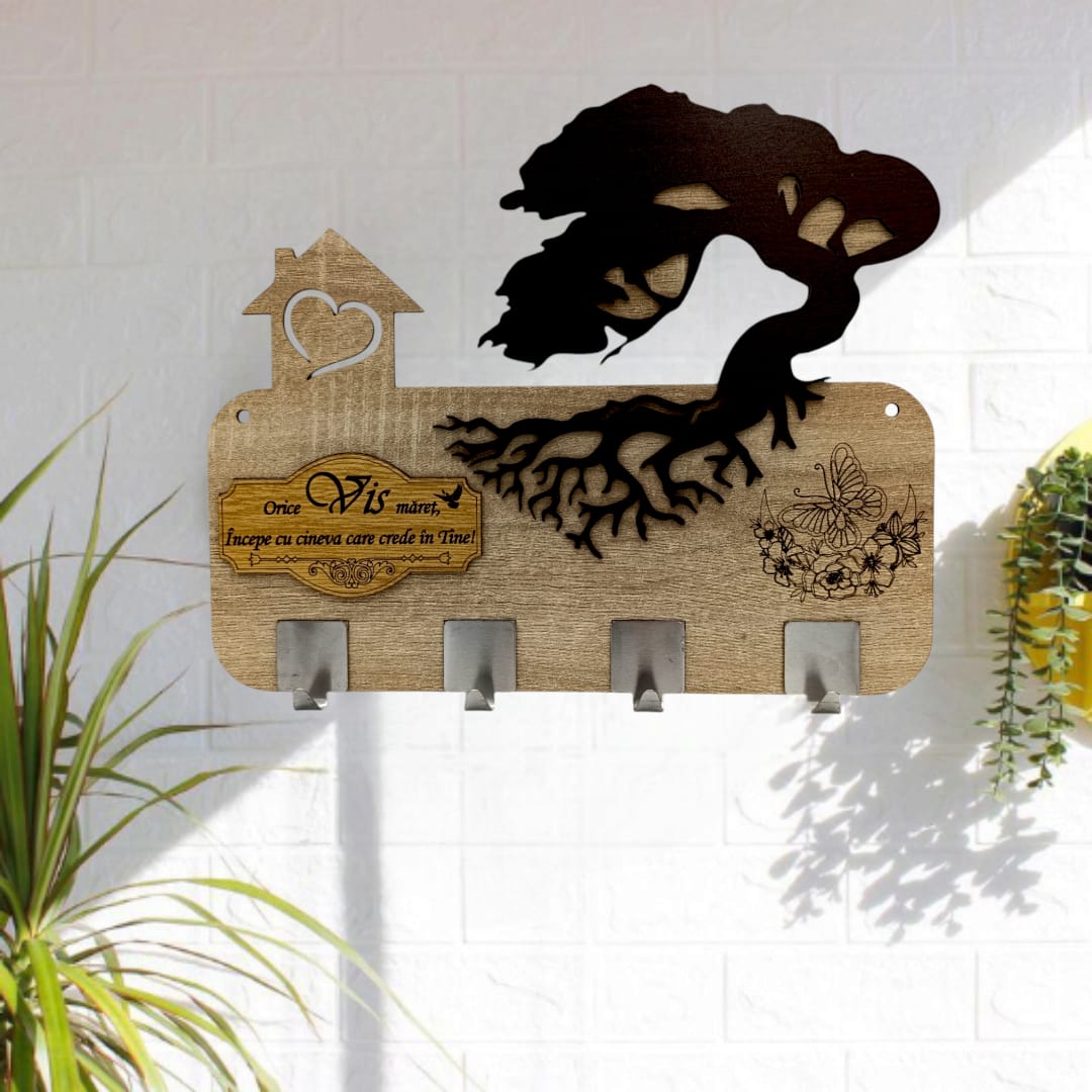 Cadou personalizat, blank cuier decorativ cu bonsai pentru perete cu mesaj standard "Un vis maret, incepe cu cineva care crede in tine!"