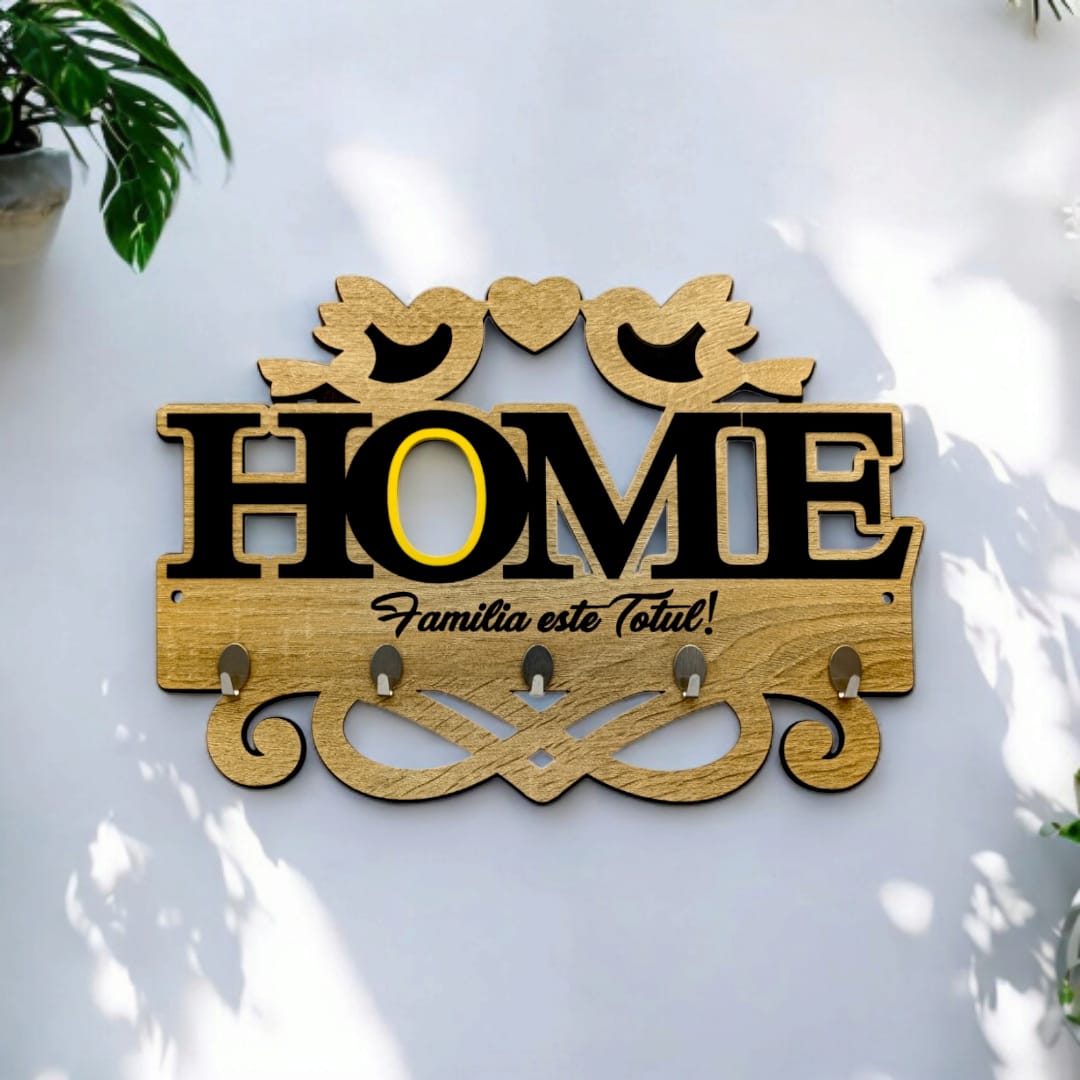 Cadou personalizat, cuier decorativ cu copac pentru perete cu mesaj standard "Familia este totul!" model 3