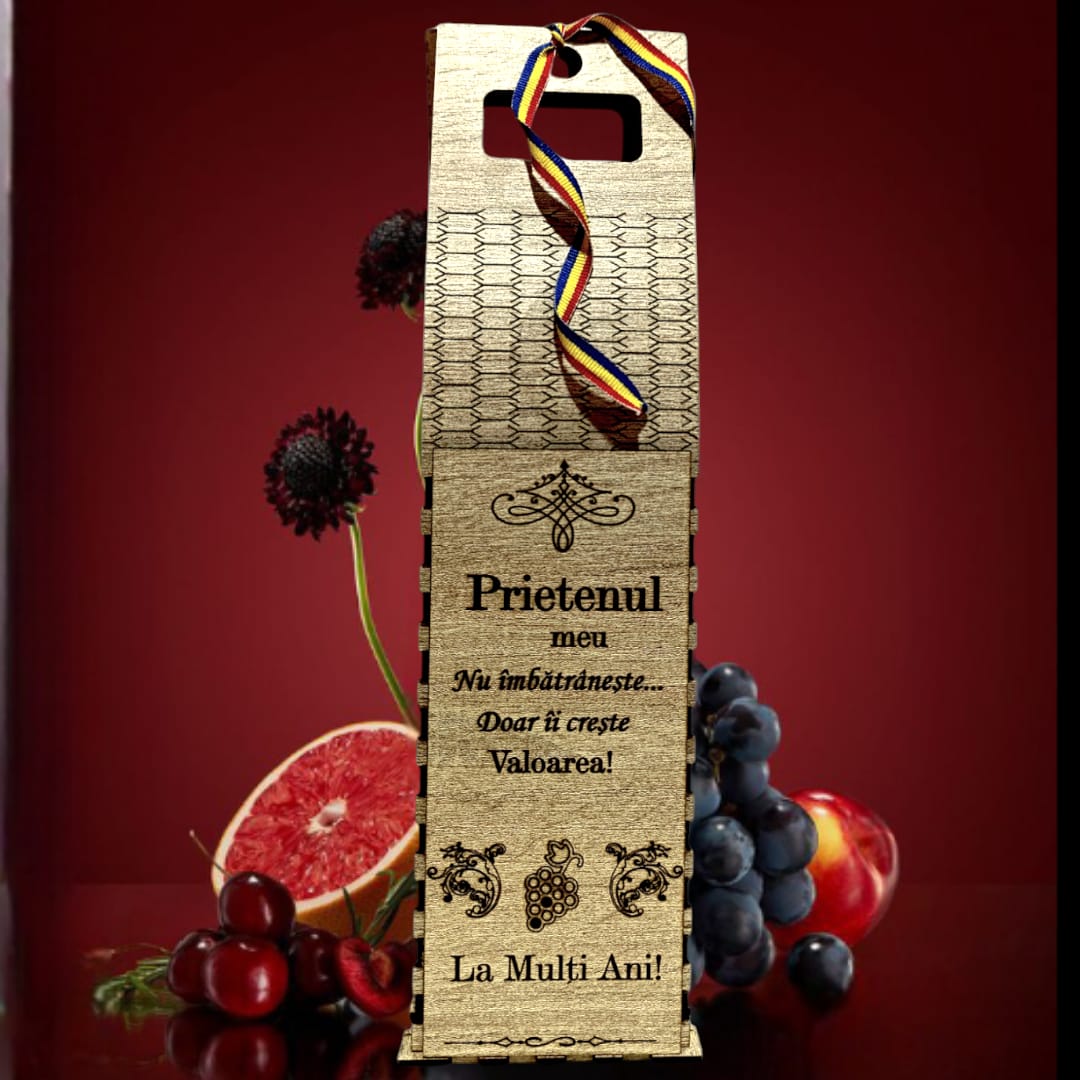 Cadou personalizat, Cutie din Lemn pentru Sticla de Vin - Cadou Elegant și Unic, personalizata pentru "Prietenul Meu", 37x10cm