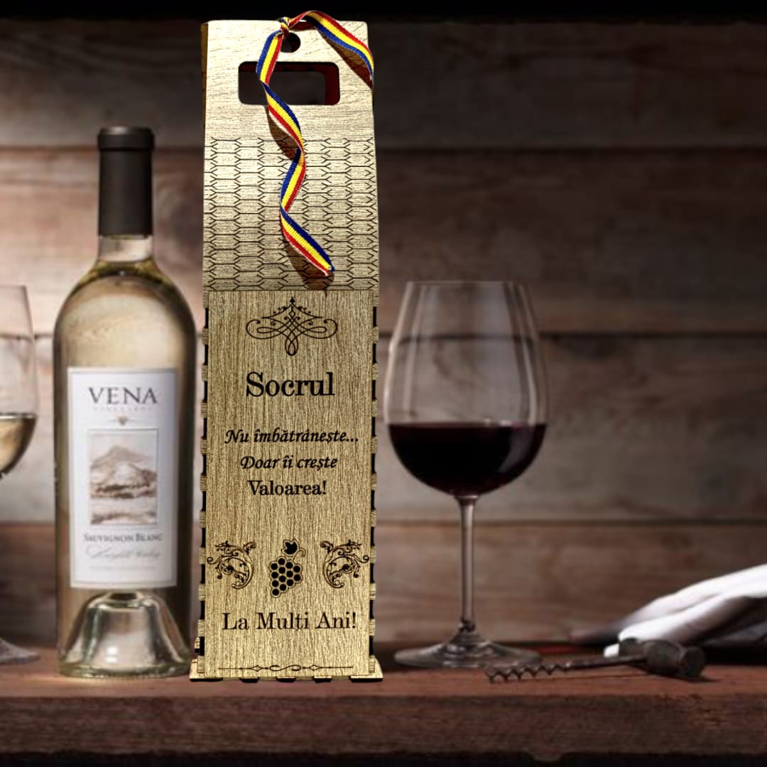 Cadou personalizat, Cutie din Lemn pentru Sticla de Vin - Cadou Elegant și Unic, personalizata pentru Socru, 37x10cm