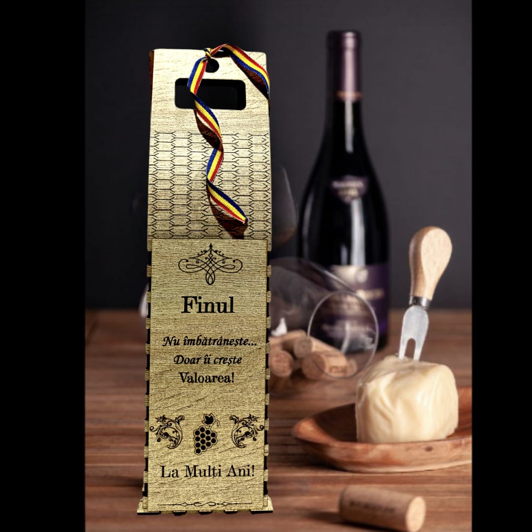 Cadou personalizat, Cutie din Lemn pentru Sticla de Vin - Cadou Elegant și Unic, personalizata pentru Fin, 37x10cm