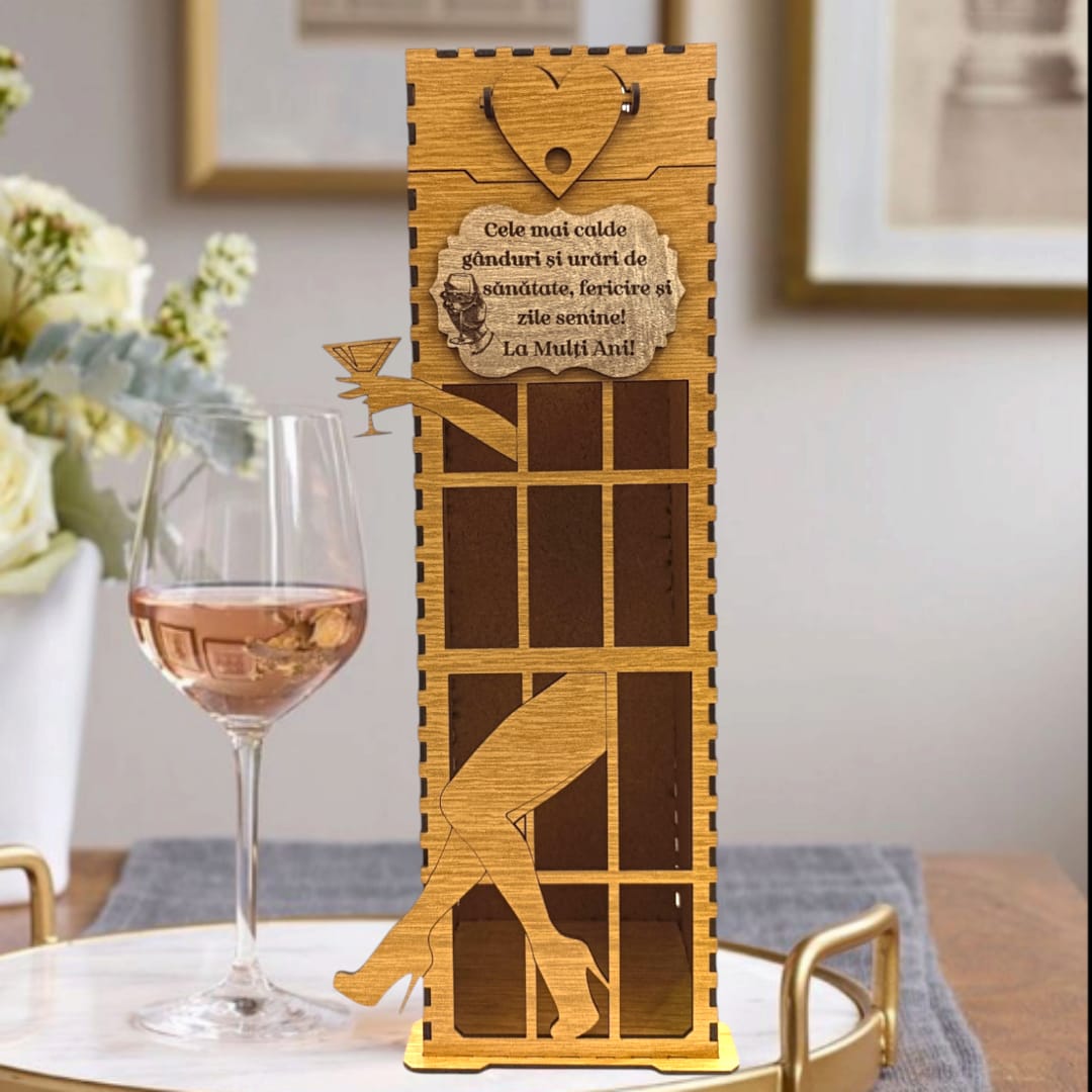 Cadou Personalizat -  Cutie de whisky/vin, model  femeie