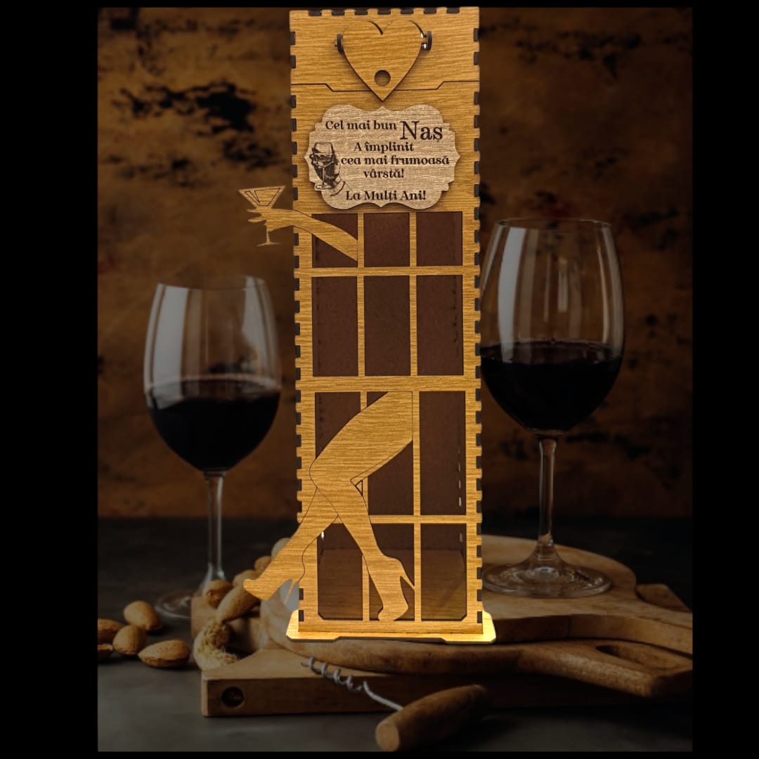 Cadou Personalizat - Cutie de whisky/vin, model femeie