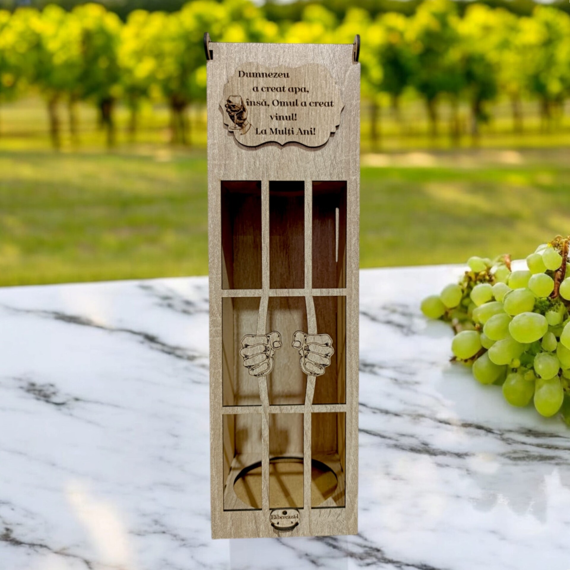 Cutie de vin personalizata cu mesaj standard, cadou personalizat pentru prieteni, familie– Produs în România de Rustic Wood Decor, model închisoare, dimensiune 35x10cm, crem sonoma