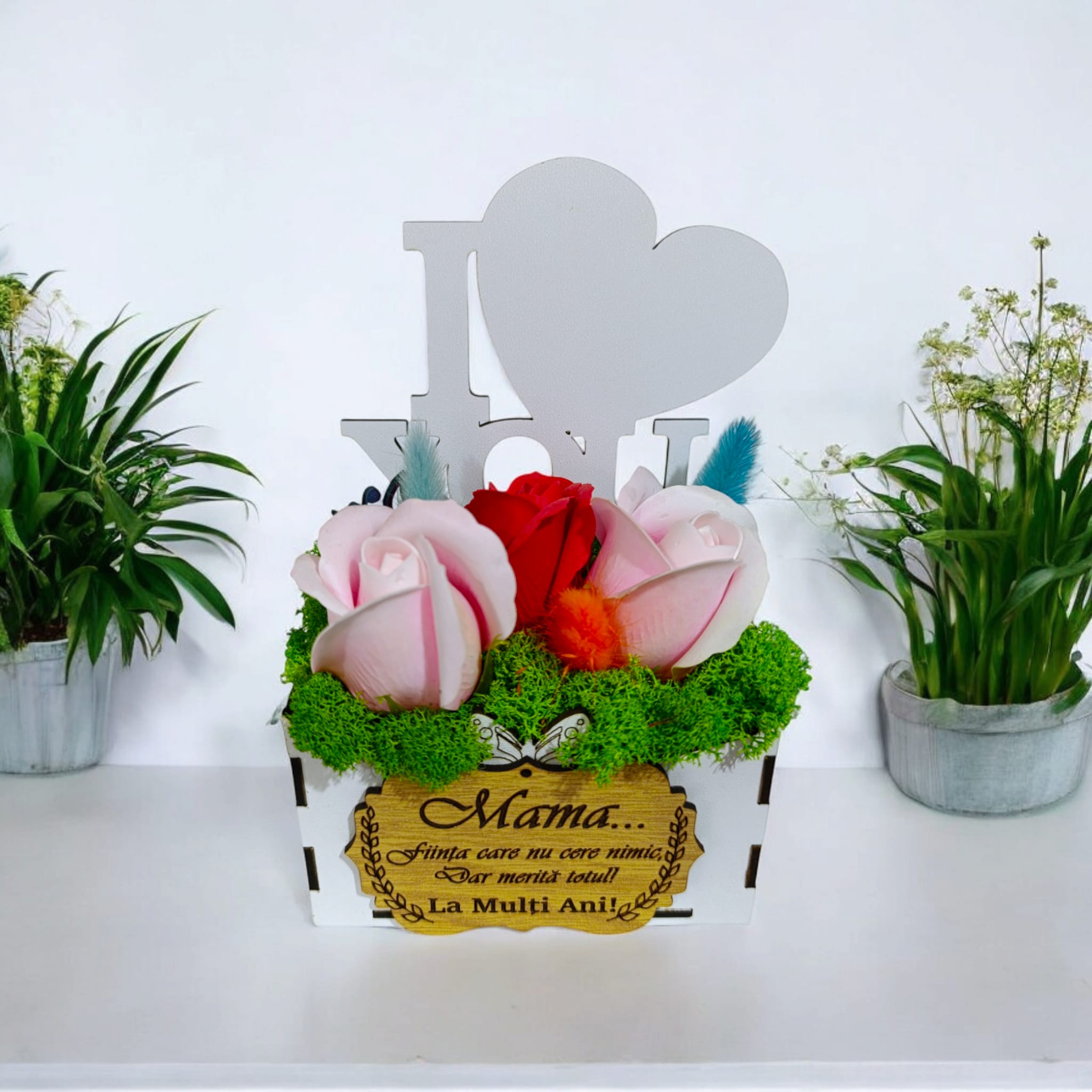 Cadou personalizat, cutie din lemn decorata cu licheni cu mesaj standard pentru Mama, model 2, dimensiune 18x12cm,