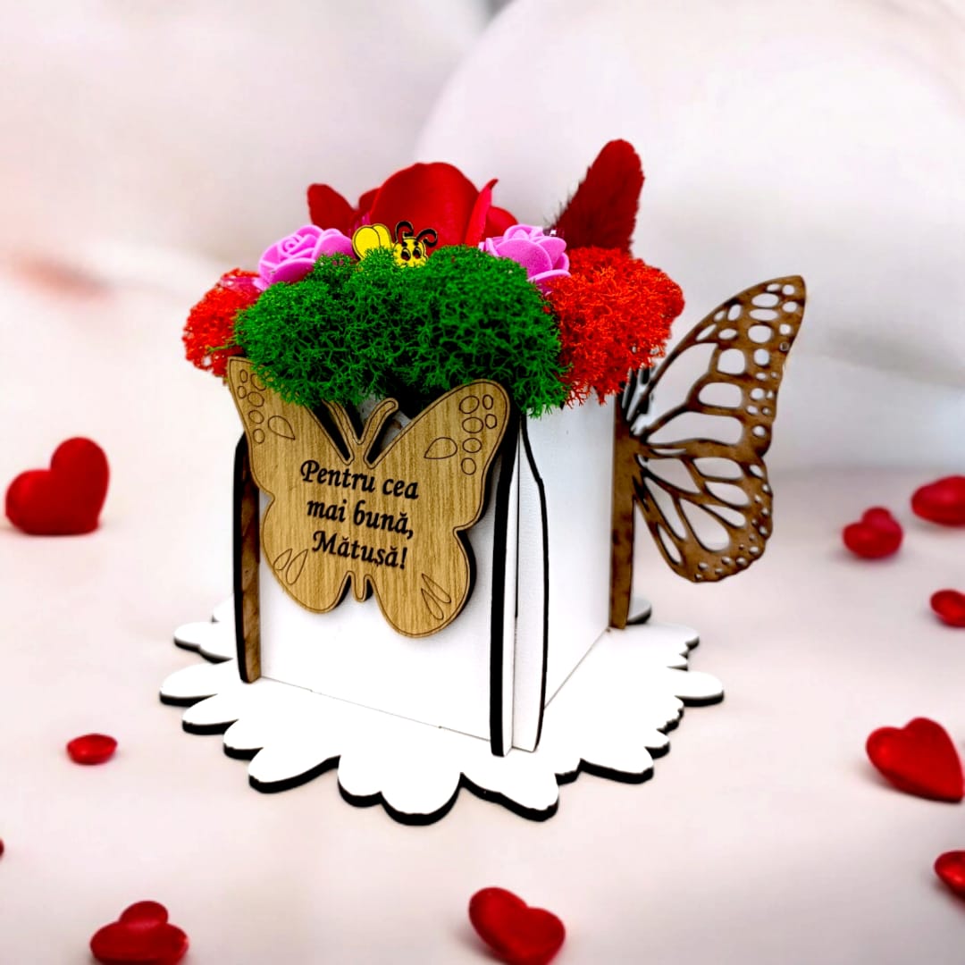 Cadou Personalizat - Cutie din lemn cu licheni si mesaj standard