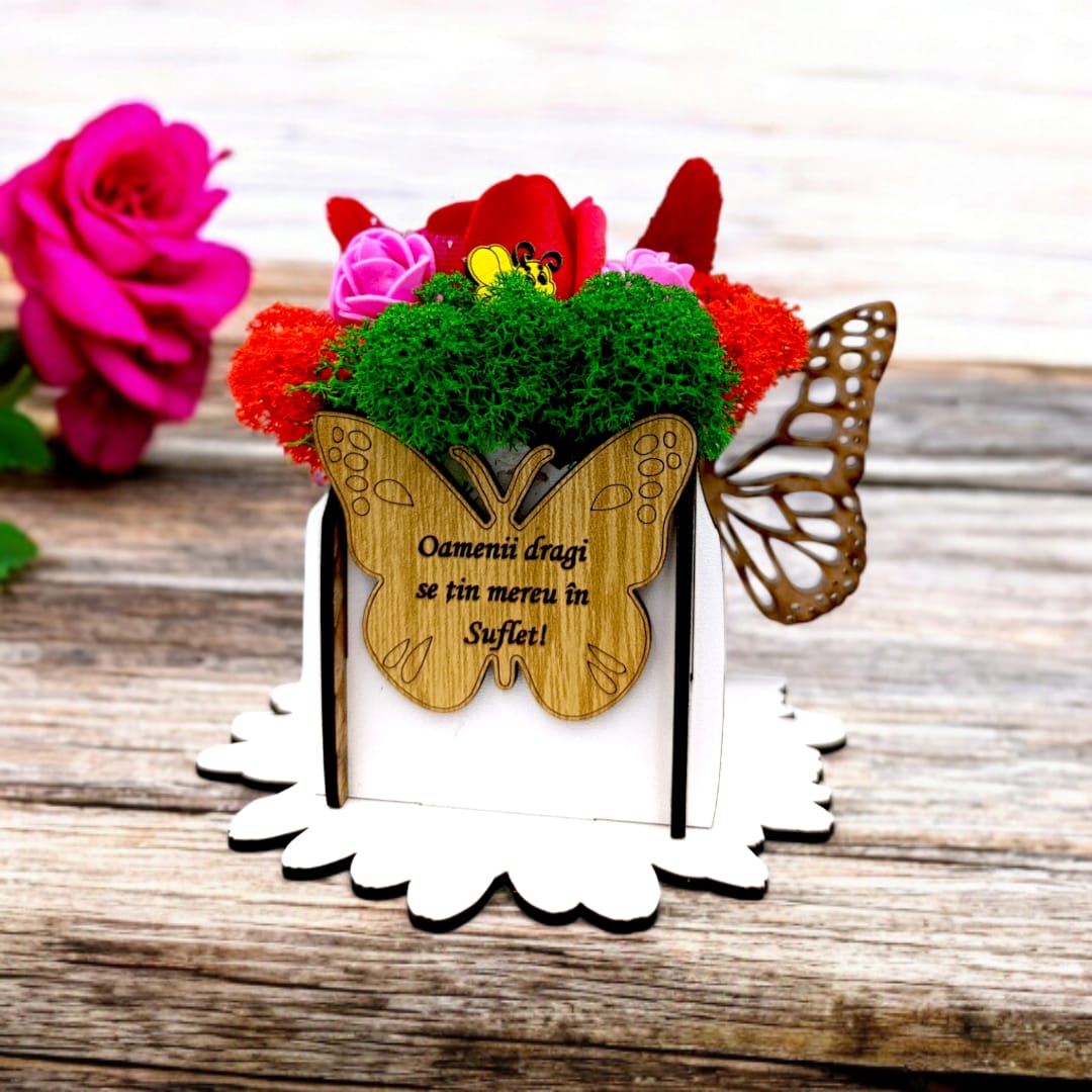 Cadou Personalizat - Cutie din lemn cu licheni si mesaj standard
