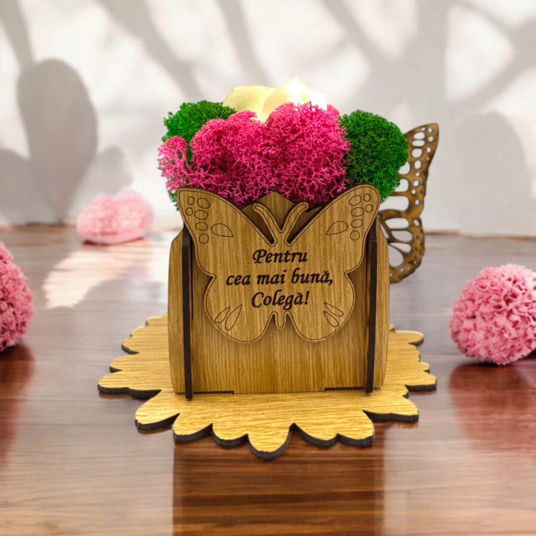 Cadou Personalizat - Cutie din lemn cu licheni si mesaj standard