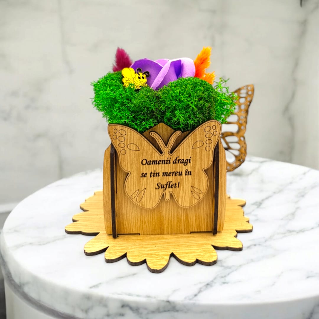 Cadou Personalizat - Cutie din lemn cu licheni si mesaj standard