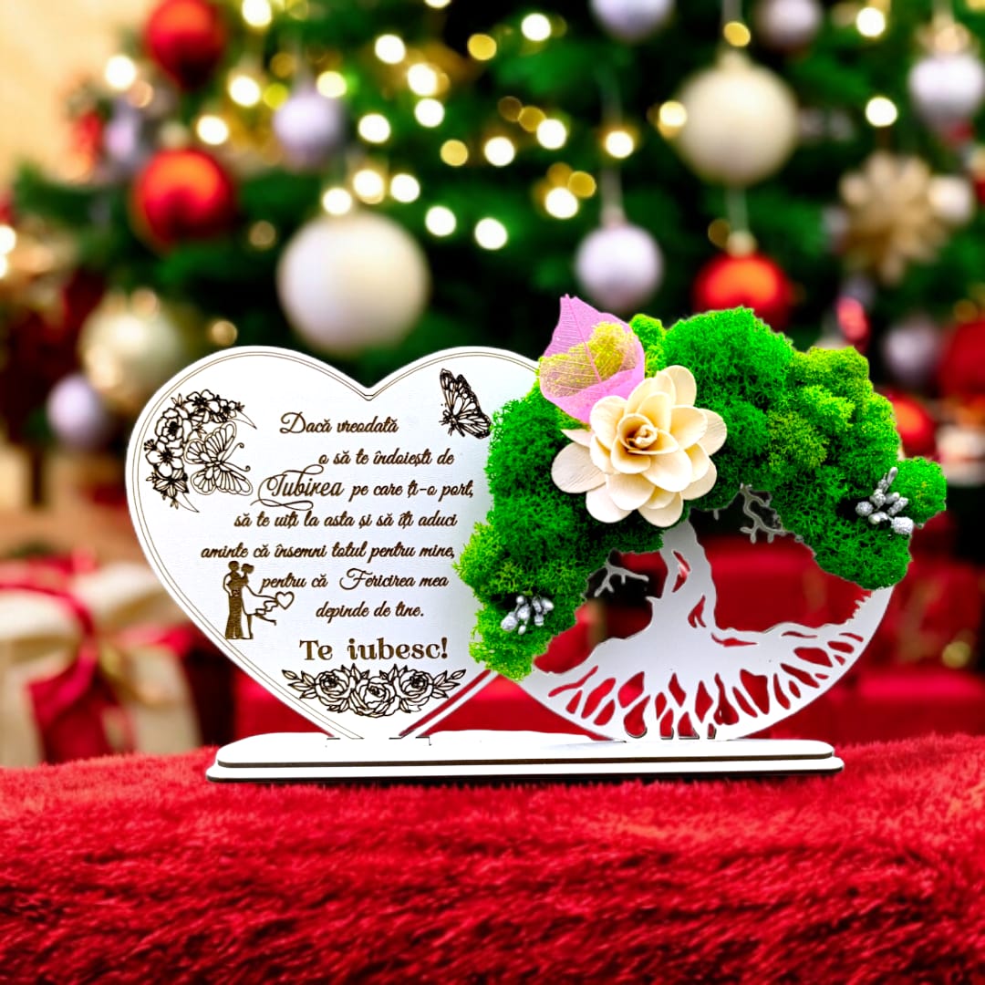 Tablou Inima Copacul vietii decorativ cu suport, personalizat "Daca vreodata te indoiesti de iubirea pe care ti-o port..." , Produs în România de Rustic Wood Decor, dimensiune 30x16cm
