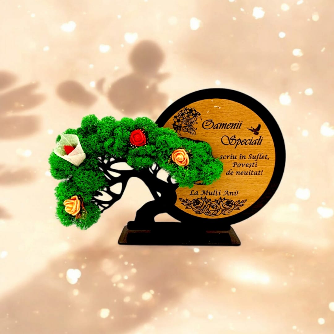Decorațiune Cadou Bonsai, personalizat cu mesaj standard pentru Oamenii Speciali "Scriu in Suflet povesti de neuitat.."
