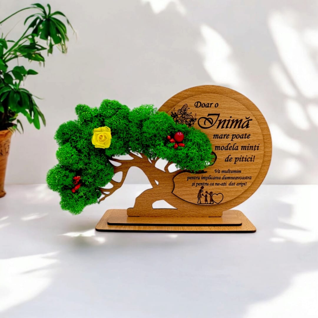 Decorațiune Cadou Bonsai, personalizat , "Doar o Inima mare poate modela minti de pitici!"